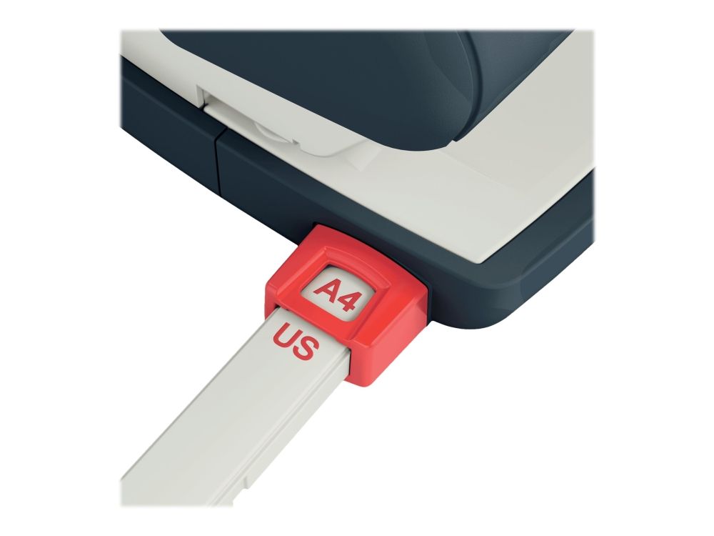 • Stærk papirguide med tydelige markeringsformater og visningsvindue for perfekt papirjustering.