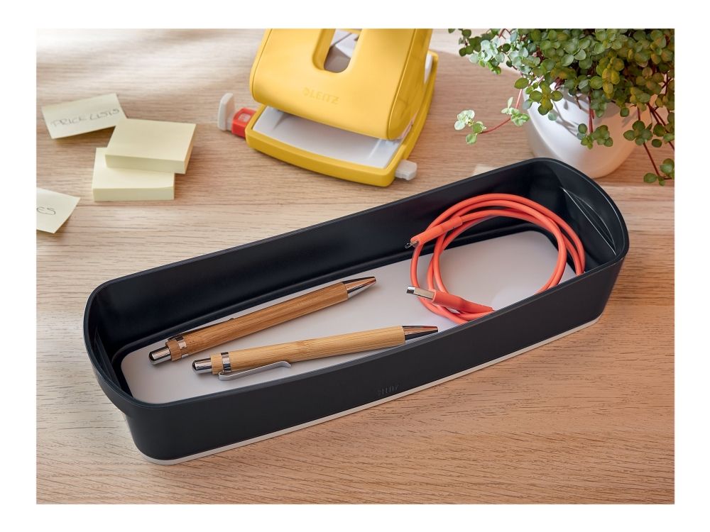 Med det minimalistiske tofarve design og indbydende matte farve tilføjer du stil og farve til dit arbejdsområde. Organiseringsbakken er robust og ideel til opbevaring af alle dine små essentielle ting som penne og make up. Denne højkvalitets organiseringsbakke er en del af MyBox modulære opbevaringssystem og passer sammen med Leitz MyBox Small men kan også bruges uden på skrivebordet eller i skuffen. Denne højkvalitets organiseringsbakke er den perfekte tilføjelse til dit hjem eller kontor for at sikre, at du forbliver afslappet og produktiv hele dagen.