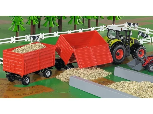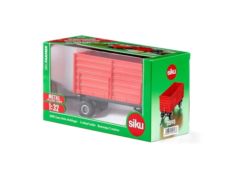 Detaljert toakslet tilhenger for festing til alle siku leketøyskjøretøyer og traktorer i skala 1:32. Et bredt spekter av funksjoner: Åpningssidevegg, Tiltbar karosseri, Tilhengerfeste for tilkobling til andre tilhengere. Utrolig slitesterk: Metallramme, Robuste sidepaneler i plast, Utmerket mobilitet takket være gummidekk. Utmerket tillegg til SIKU Farmer-traktorer i samme skala. Målestokk: 1:32, Materiale: metall/plast, Mål: 18,5 x 6,9 x 9,1 cm.
