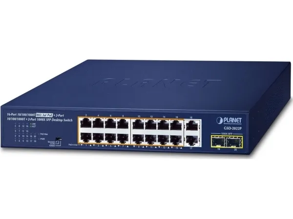 By offering reliable switching technology and advanced networking features, the GSD-2022P optimizes the installation and power management of network devices such as wireless access points, VoIP phones, and security cameras. It also eliminates time and cost of deployment by integrating power and data switching into one unit and freeing network devices from restrictions of power outlet locations and the additional AC wiring.