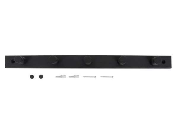 HOME It® knagerække med 5 knage 50×4×7 cm fyrretræ sort