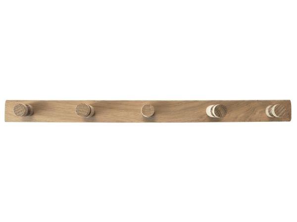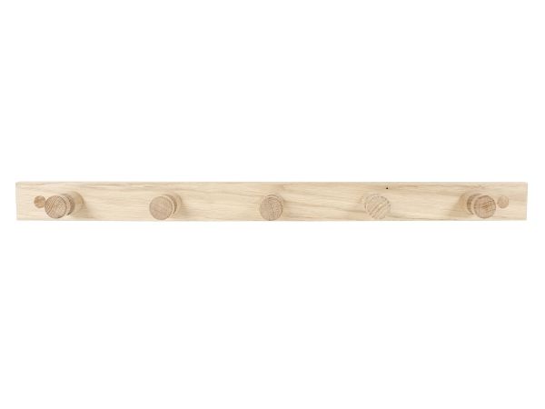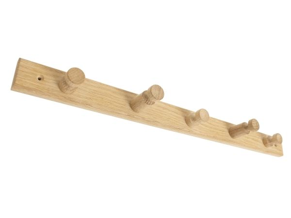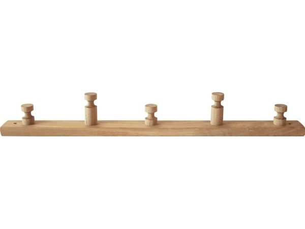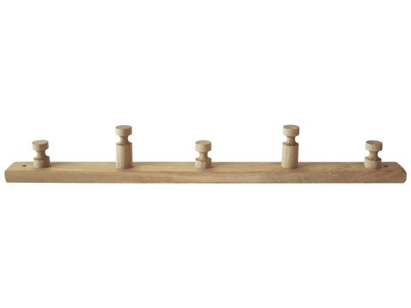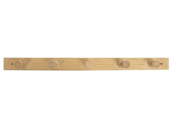 HOME It® knagerække i FSC-godkendt egetræ til entré, badeværelse og køkken. Knagerækken har fem knager i to forskellige længder og har forborede monteringshuller med forsænkning til skruer, så den er nem at montere.