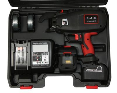 Inkl. 2 stk. 14,4 V Li-ion 4,0 Ah batterier, lader, 2 ruller tråd samt robust plastkuffert.