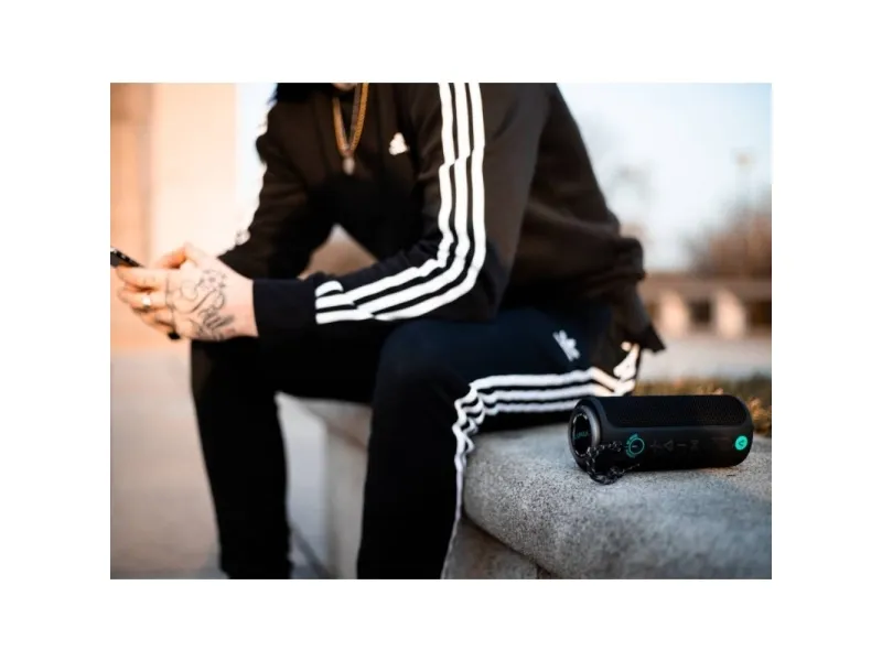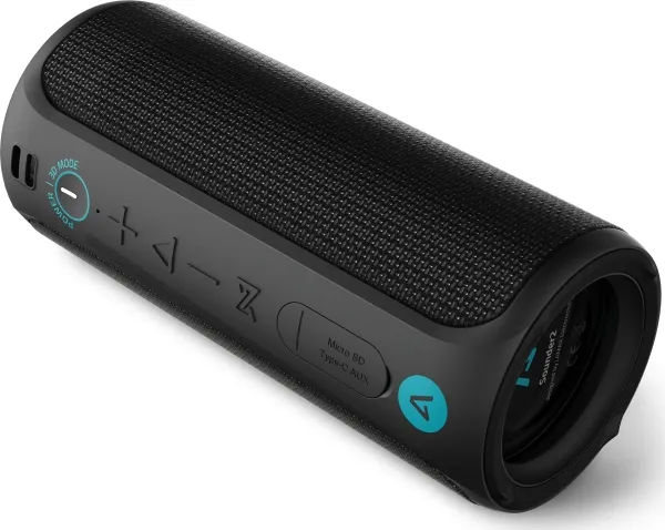 Fantastisk Bluetooth-højttaler med 30 W på alle siderSuperBass genererer ordentlig basPerfekt rummelig lyd takket være 3D lydTWS - tilslut trådløst en anden højttalerVandtæthed i henhold til IP67 - ingen frygt for eventyrSamlet effekt: 30 WVandtæthed IP67Driftstid 12 timerTilstand Super Bass a 3D-lydTrue Wireless stereoIndgang til AUX og microSDOpladning via USB-C