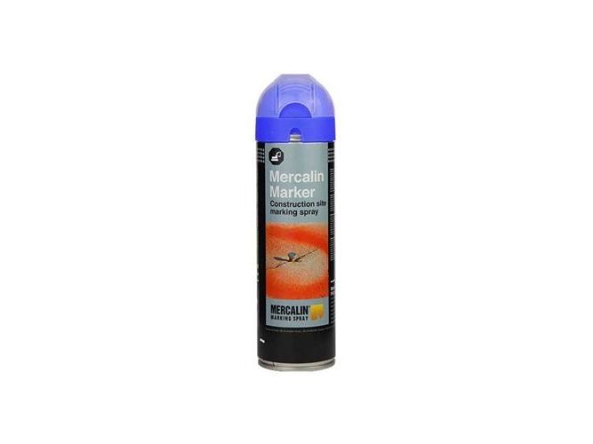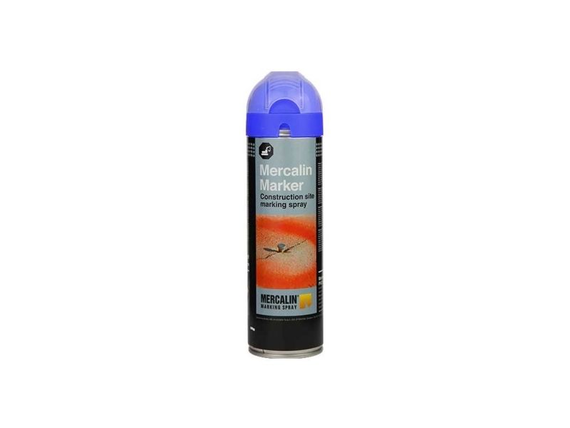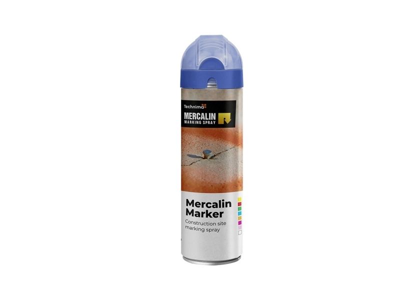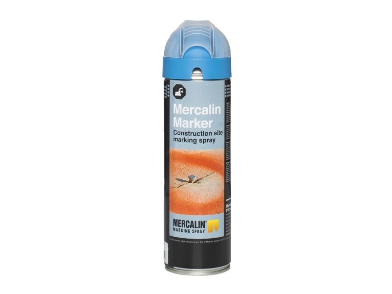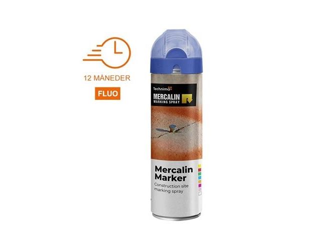 Mercalin markeringsspray 500ml - FLUO blå, bl.a. t/asfalt, beton, græs, grus, træ, sten & is