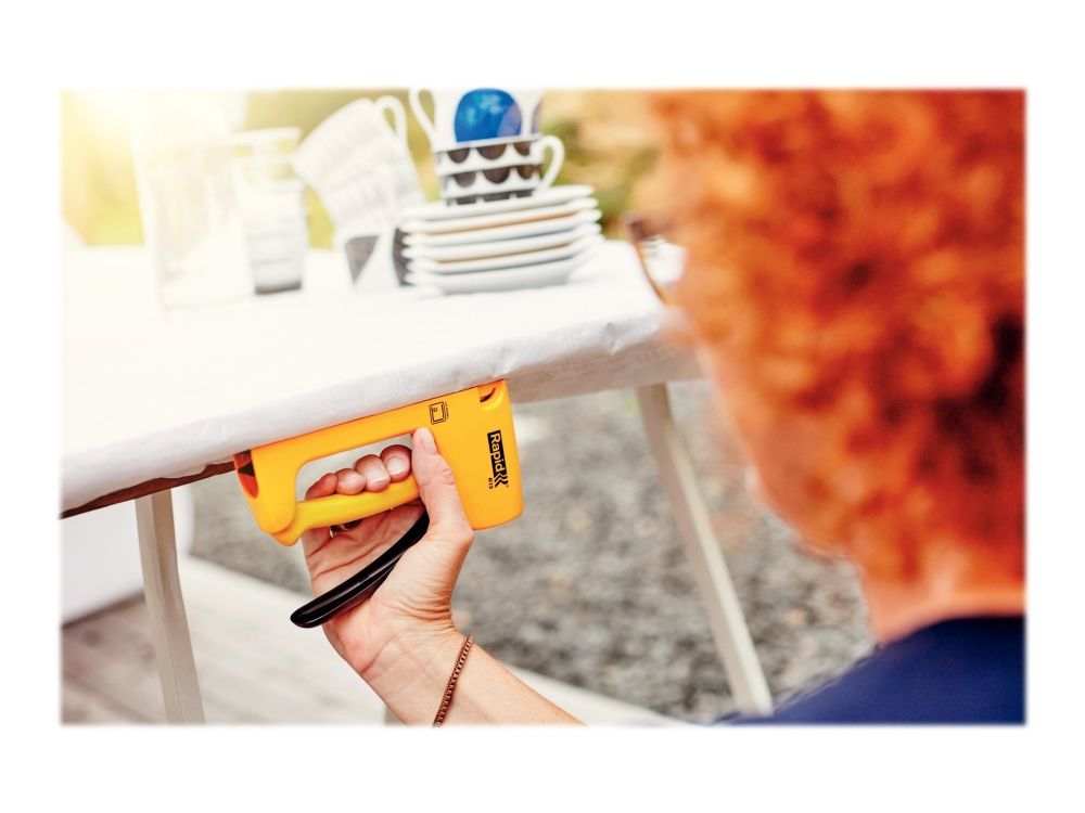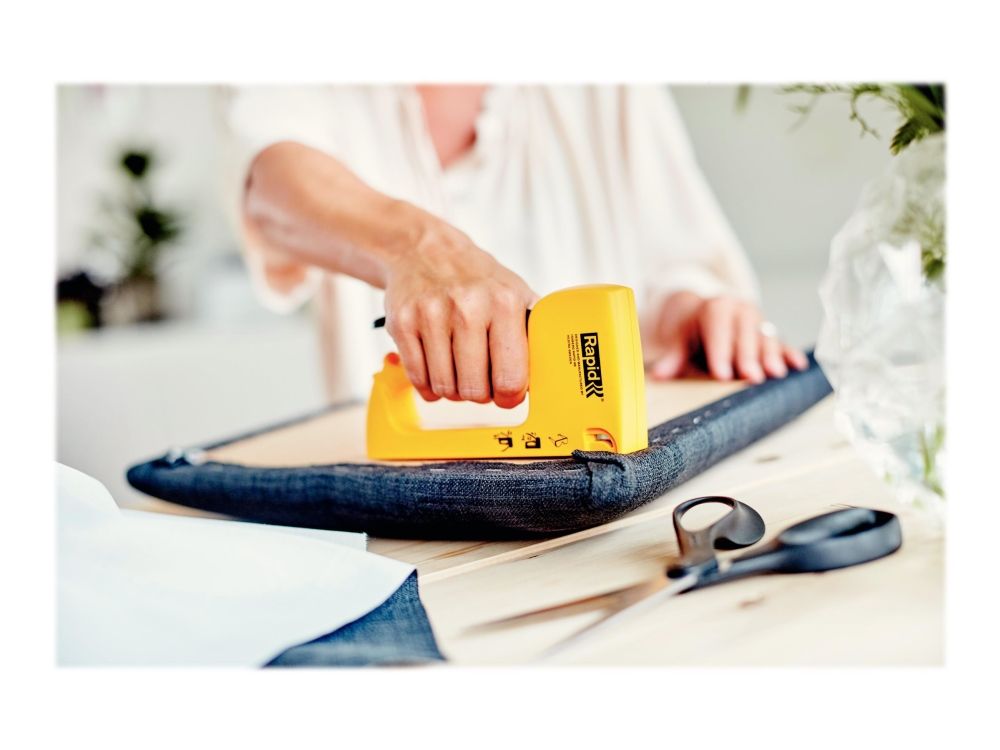 Stiftepistol for enkle stiftejobber. Ergonomisk grep. Egnet for hjemmedekor, festing av tekstiler og enklere reparasjoner.