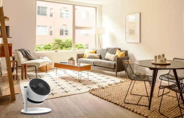 The BONECO F210 creates powerful air circulation. The head of the fan can be rotated 270 degrees so it can be pointed virtually anywhere you’d like. The superior air circulation is achieved by 3 main points: the single arm design allows for maximum air intake, the deep pitch fan blades draw large amounts of air through the fan, and the uniquely curved shape of the front grill boosts the fans airspeed. This all allows for a truly versatile fan. Point it at the ceiling for the signature air shower feeling and to reduce hot and cold zones, direct air between multiple floors, pull fresh air indoors, or use it with your air conditioner or furnace to achieve a uniform temperature within your space.