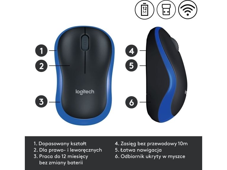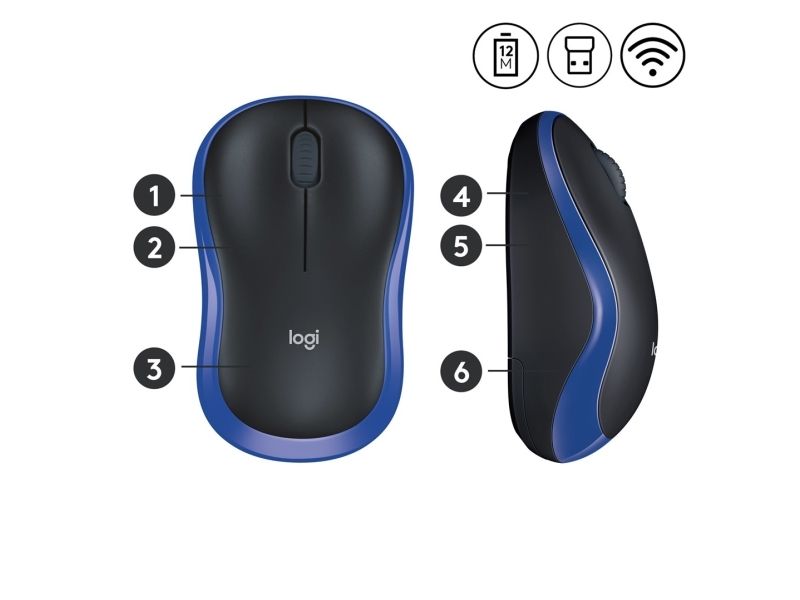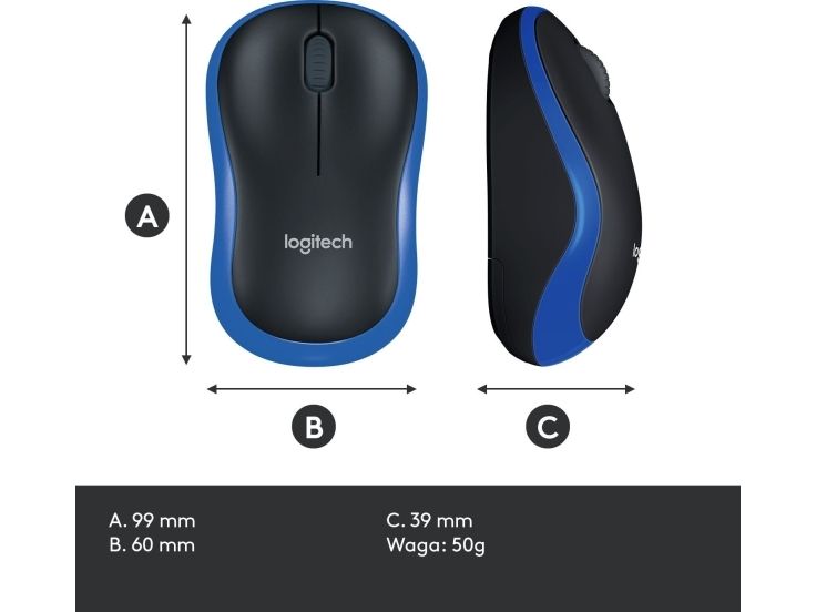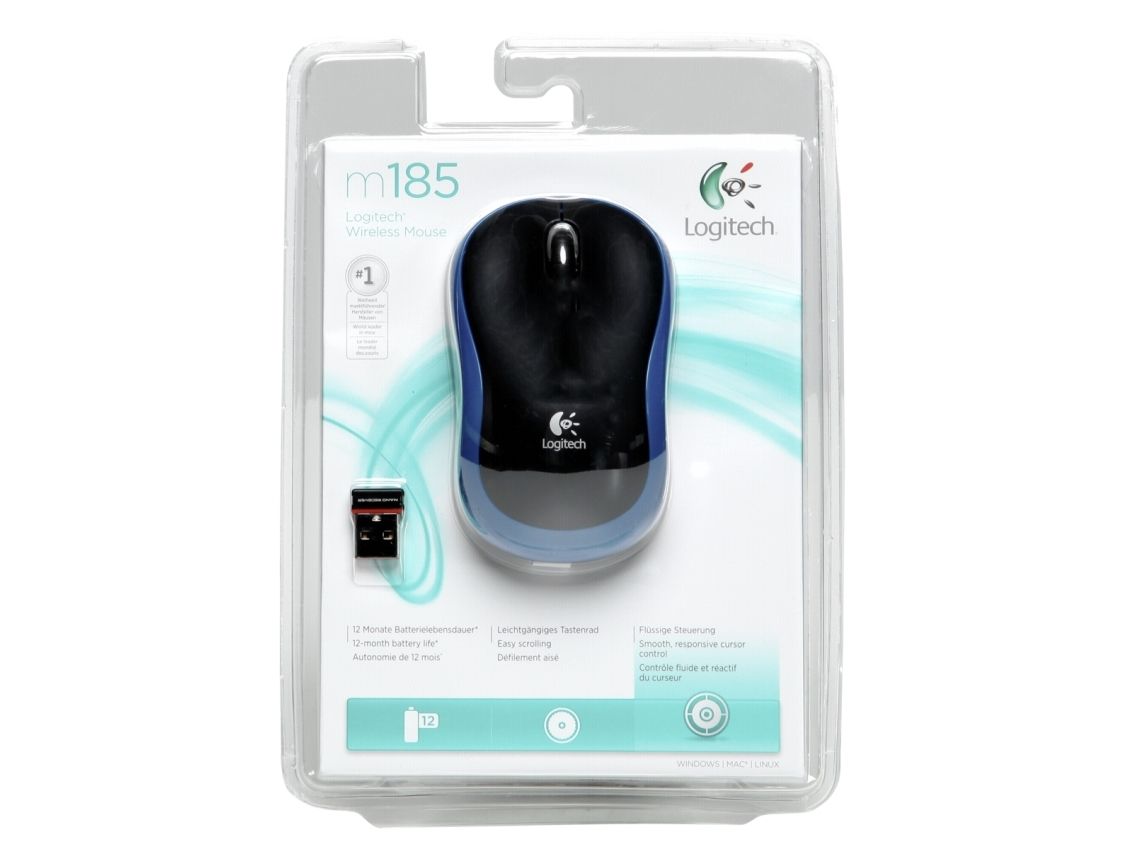 Logitech M185 - Mus - optisk - trådløs - 2.4 GHz - USB trådløs mottaker - blå