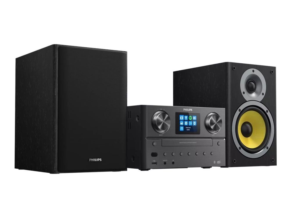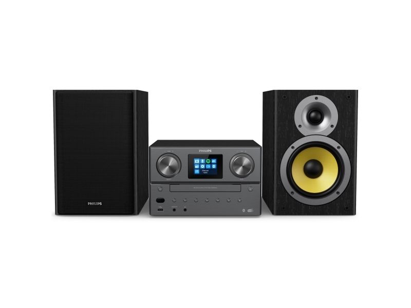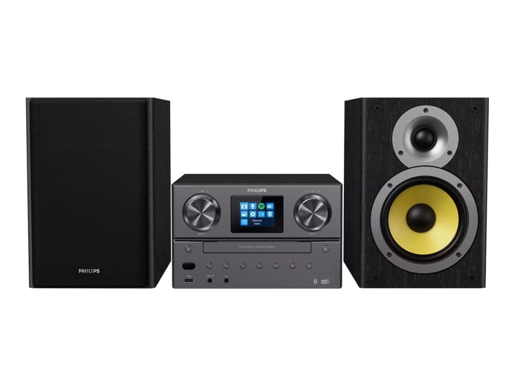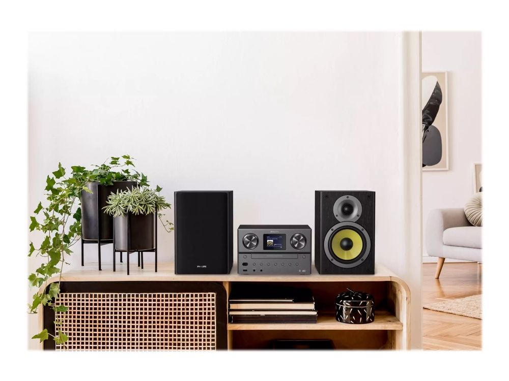 Fyll rommet med lydene du liker. Med Internett-radio, Spotify Connect, Bluetooth og en CD-spiller kan dette attraktive mikrosystemet spille av alt. Du kan også stille inn DAB+- eller FM-radio - alt i stor 100 W-lyd.