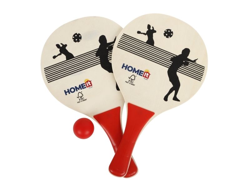 Klassiske strandtennis med 2 ketsjere og 1 bold som er nem at transporter med rundt og kan spilles de fleste steder. Spillet anvendes dog typisk på stranden eller i haven, da det gælder om at spille bolden frem og tilbage til hinanden. Spillet er uden net, og man er på hold. Produktet indeholder 2 ketsjere i træ, 1 bold og en pose til at transportere sættet i.