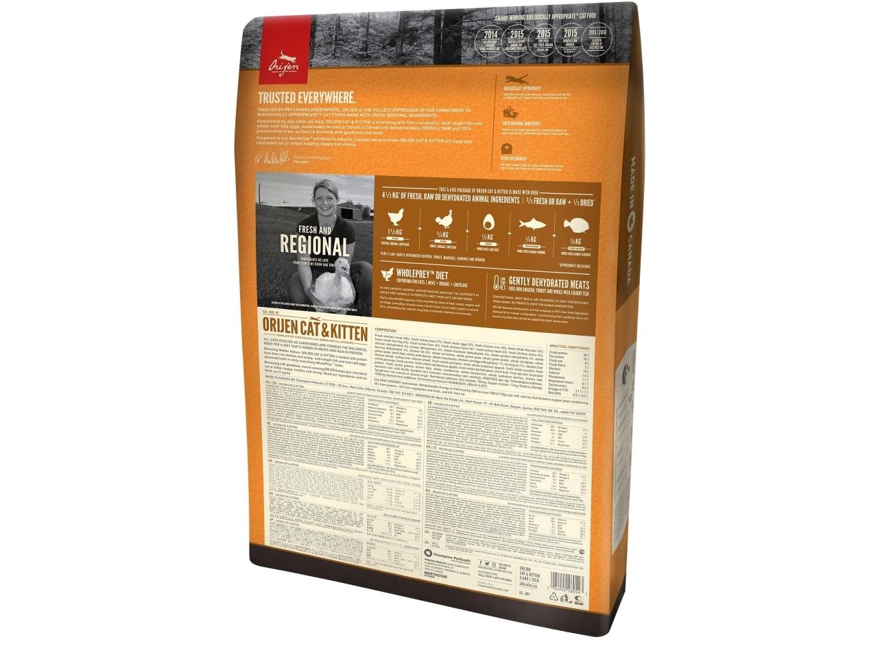 Ulig noget andet katte- eller killingefoder, er hele 2/3 af kødet i ORIJEN FRISK (nedkølet, ingen konserveringsmidler), eller RÅ (lynfrosset, ingen konserveringsmidler), hvilket også inkluderer de første 10 ingredienser.
