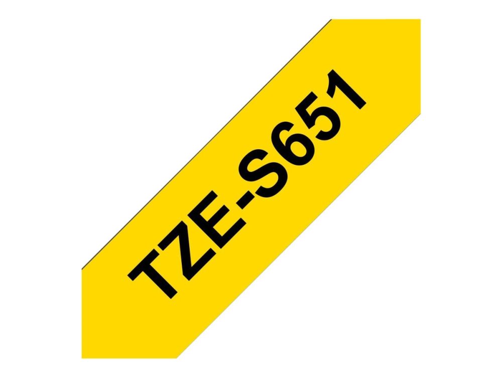 Brother TZe-S651 - Ekstra sterk adhesiv - svart på gult - Rull (2,4 cm x 8 m) 1 kassett(er) laminert teip - for Brother PT-D600; P-Touch PT-2430, 3600, 7600, 9800, D800, E500, E550, H500, P750, P900