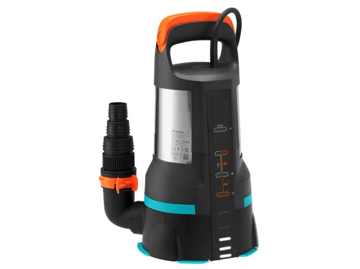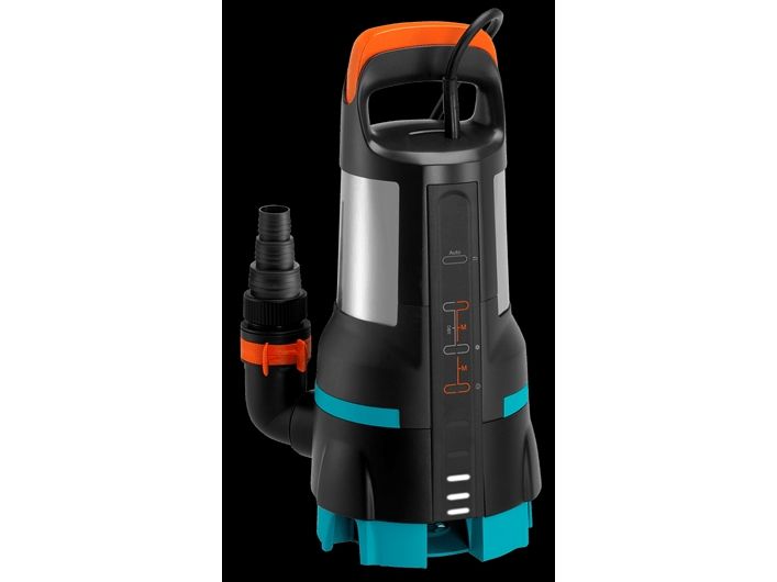 GARDENA, Europe's leading brand for high-quality and up-to-date gardening tools and accessories, presents the Clear/Dirty Water Pump 19500 Aquasensor, a new generation of high performance and low energy consumption submersible pumps. Whether you want to pump out and clean your garden pond, empty a construction trench filled with rainwater or clean your basement after a flood or burst pipe—with this innovative combination pump you can feel the power of GARDENA pumps and easily pump out and transfer both clear and dirty water. Its motor has an output of 860 W, providing an impressive pumping capacity of 19500 litres of water per hour. With a pressure of 1.0 bar and a maximum delivery height of 10 m, this hybrid pump is particularly efficient. The flat suction of the clear water mode can remove clean or only slightly dirty water down to 1 mm, meaning a cellar floor can easily be wiped dry afterwards. In the case of murky water containing dirt particles with a particle size of up to 35 mm, the 2in1 submersible pump simply becomes a dirty water submersible pump by switching the operating mode. This is ideal for draining a waterlogged construction pit with coarse dirt particles in the water among many other wastewater pumping chores. It's amazingly simple to switch between the clear and dirty water modes, you'll have absolutely no problems with getting your hands dirty or accidently soaking your shoes. Thanks to its intelligent, not to mention sleak design, and high-quality manufacturing, the Clear/Dirty Water Pump 19500 Aquasensor from GARDENA remains leak-proof at all times and keeps hands and clothing clean and dry. The long-lasting ceramic shaft system has triple sealing for extra durability. A further innovative highlight of the pump is the LED Aquasensor system, which can intelligently maintain your required water level. The Aquasensor enables the combi-pump to work in narrow shafts and offers precisely adjustable switch-on and switch-off heights. The water can be measured without direct contact with the sensor and displayed via practical LEDs on the device. Furthermore, the Aquasensor offers intuitive touch operation, dry-run and blockage protection as well as helpful timer functions. Even more helpful is the new easy click hose connection system. Hoses with a diameter of 32 mm (1 ¼"), 38 mm (1 ½") and 50 mm (2") can be connected just by a click. The connection with an optional G1 ½" thread enables a wider range of connection possibilities. This makes this submersible clear water / dirty water pump particularly impressive, not only in its appearance, but above all in its functionality, making it ideal for all home and garden owners with high expectations. You can place your trust in GARDENA's 40 years of expertise in irrigation, drainage and domestic usage pumps. As a further sign of quality we offer a 5-year warranty with all our pumps, just register the product online. Feel the power of GARDENA pumps!