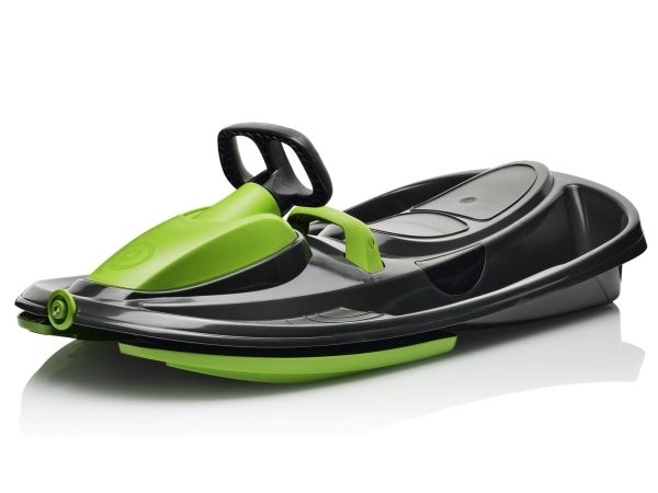 Vores bedst sælgende bobslæde med rat. Års udvikling har ført til designet af en unik slæde med rat. Et produkt, der indeholder mange fordele, der med rette gjorde det til markedsleder. 100% HDPE plast, ingen metaldele = ingen korrosion Solid bremse Kan bruges af 2 personer på engang Automatisk selvindtrækkende kabeltov Differentialstyresystem til perfekte kurver: du mister ikke hastigheden på skråningen! Samles direkte på skråningerne - klik blot på rattet Længde: 98 cm Bredde: 56 cm Højde: 28 cm Max personvægt: 120 kg Vægt: 3,95 kg Anbefales fra 3 år