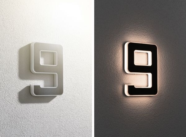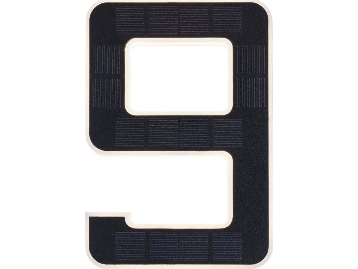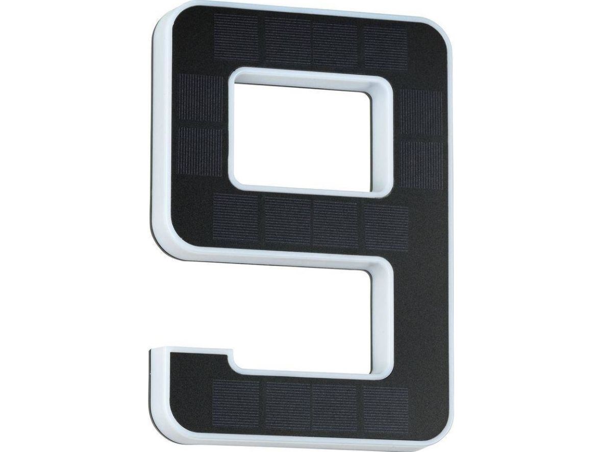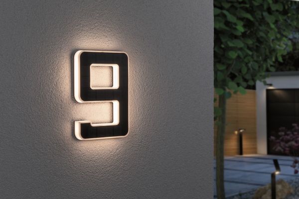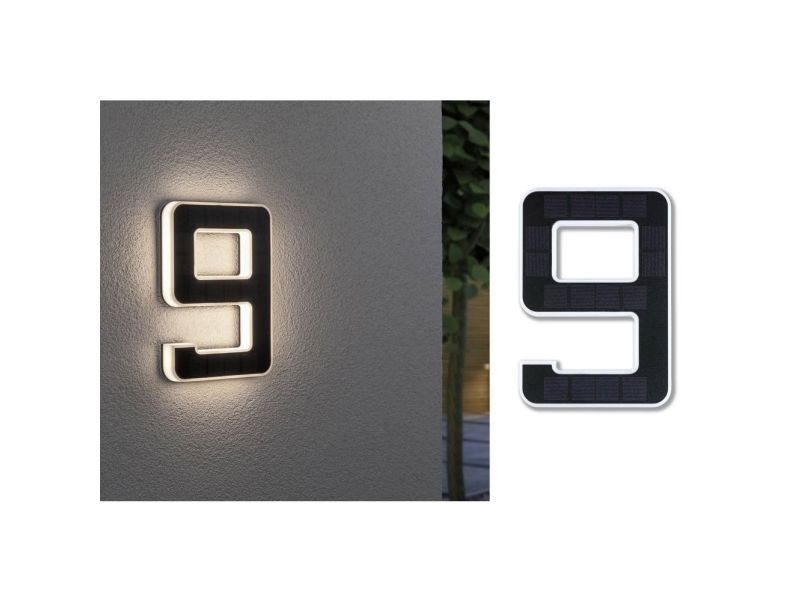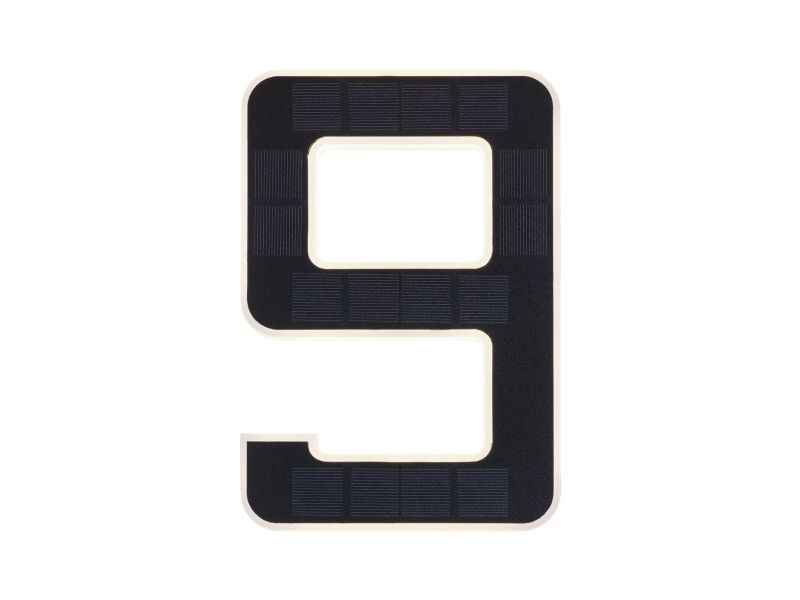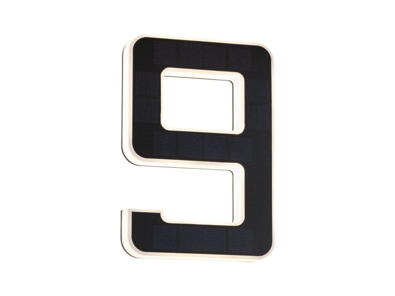 Det lysende nummer 9 er den perfekte husnummerlampe, alene eller med flere cifre. Takket være solcelledrift kan den fastgøres på husvæggen helt uafhængigt af strømudtag. Om dagen bliver solcellepanelet opladet af sollys, om natten bliver det dekorative nummer indirekte belyst.
