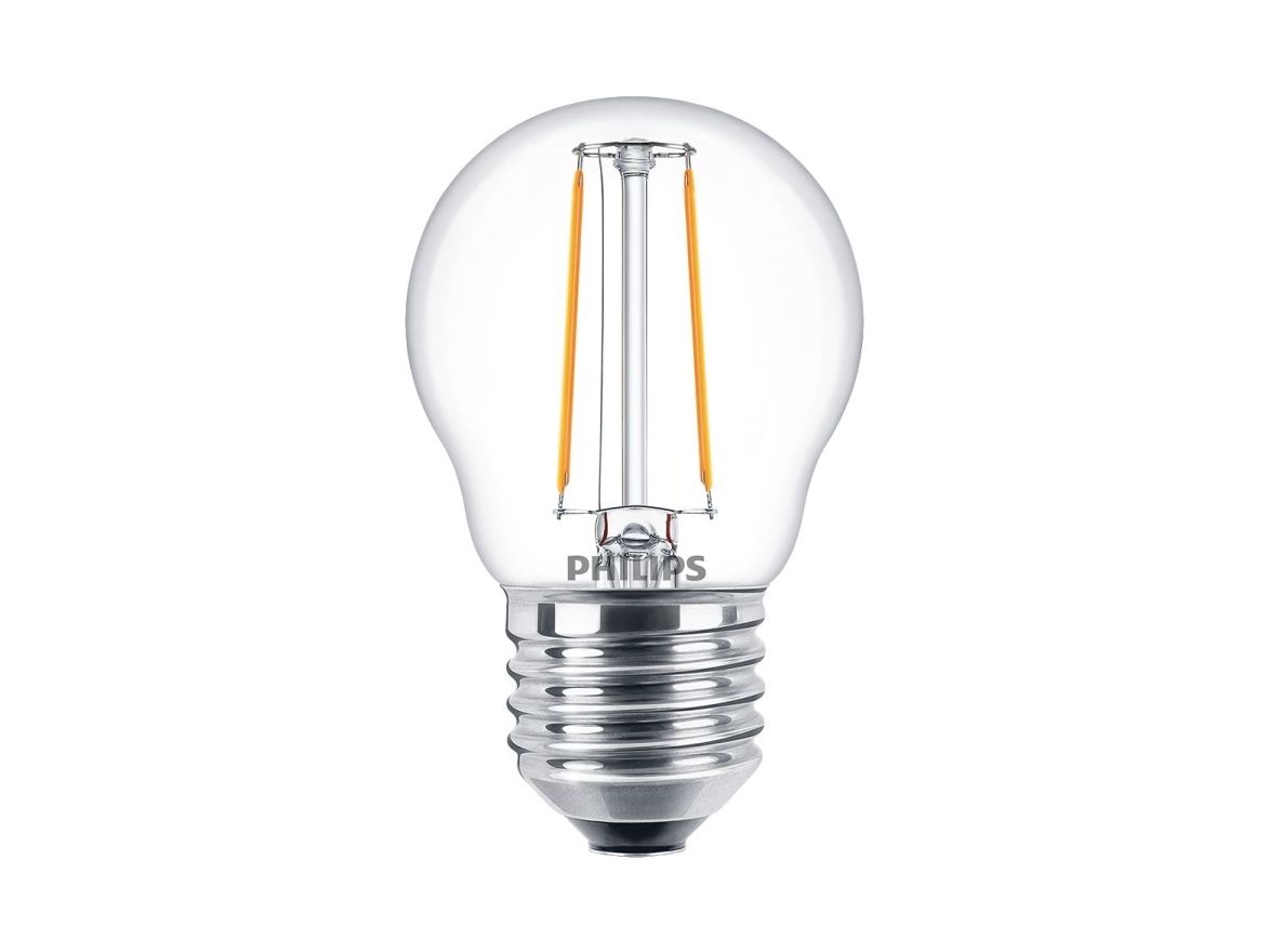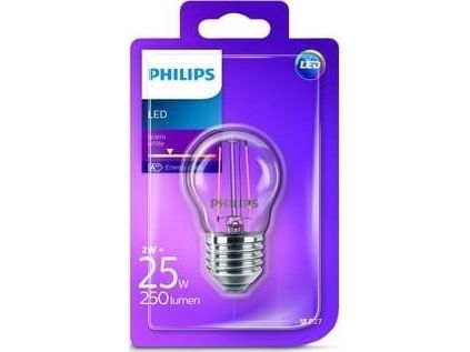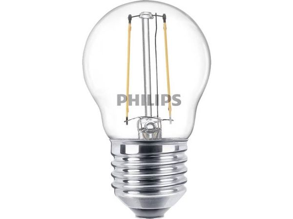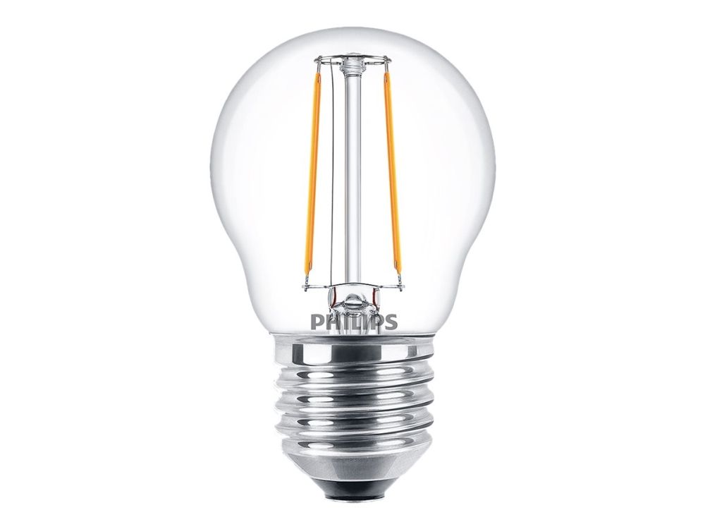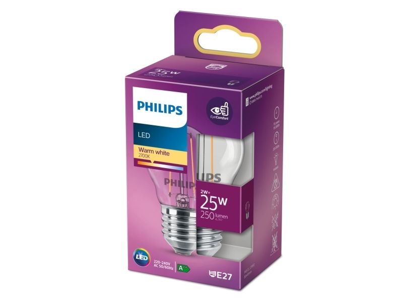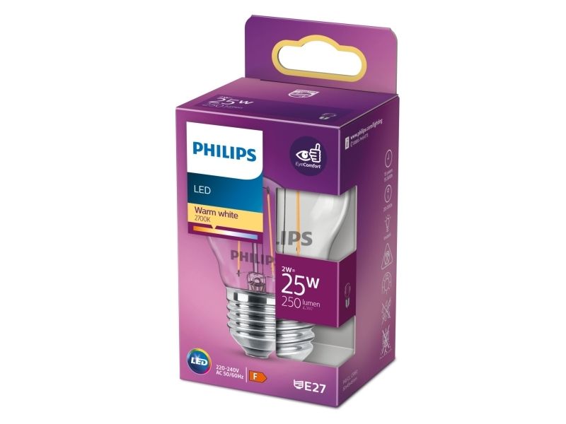 Philips - LED-filamentlyspære - form: P45 - klar finish - E27 - 2 W (ekvivalent 25 W) - klasse E - varmt hvitt lys - 2700 K - gjennomsiktig