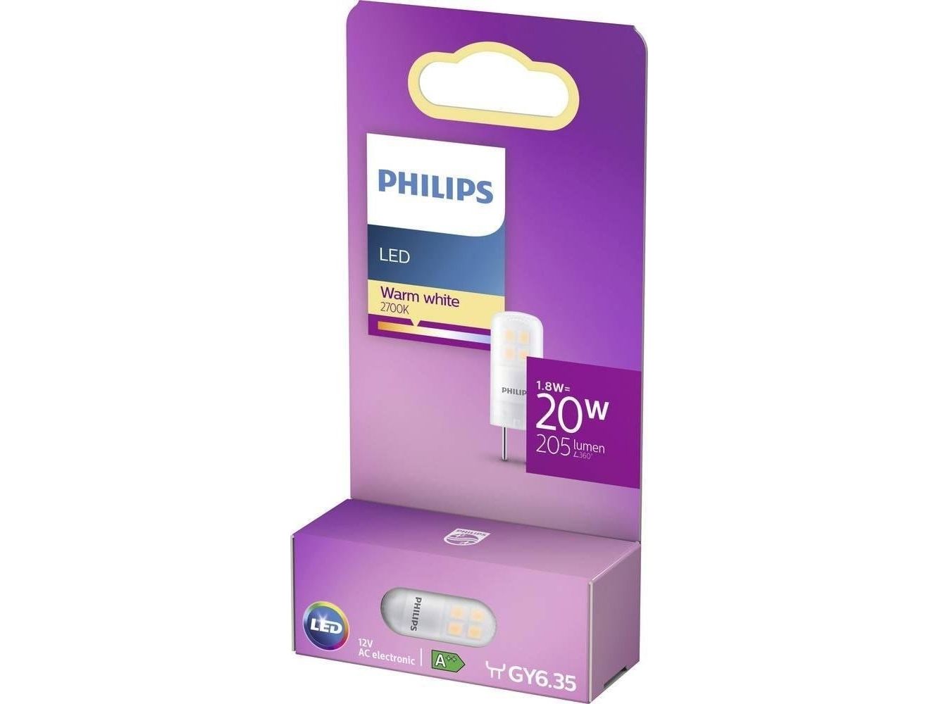 Philips - LED-lyspære - form: kapsel - GY6.35 - 1.8 W (ekvivalent 20 W) - klasse F - varmt hvitt lys - 2700 K