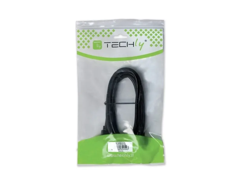Techly ICOC-HDMI-4-EXT018. Cable length: 1.8 m, Connector 1: HDMI Type A (Standard), Connector 1 gender: Male, Connector 2: HDMI Type A (Standard), Connector 2 gender: Female, Connector contacts plating: Gold, 3D, Data transfer rate: 10 Gbit/s, Audio Return Channel (ARC), Product colour: Black