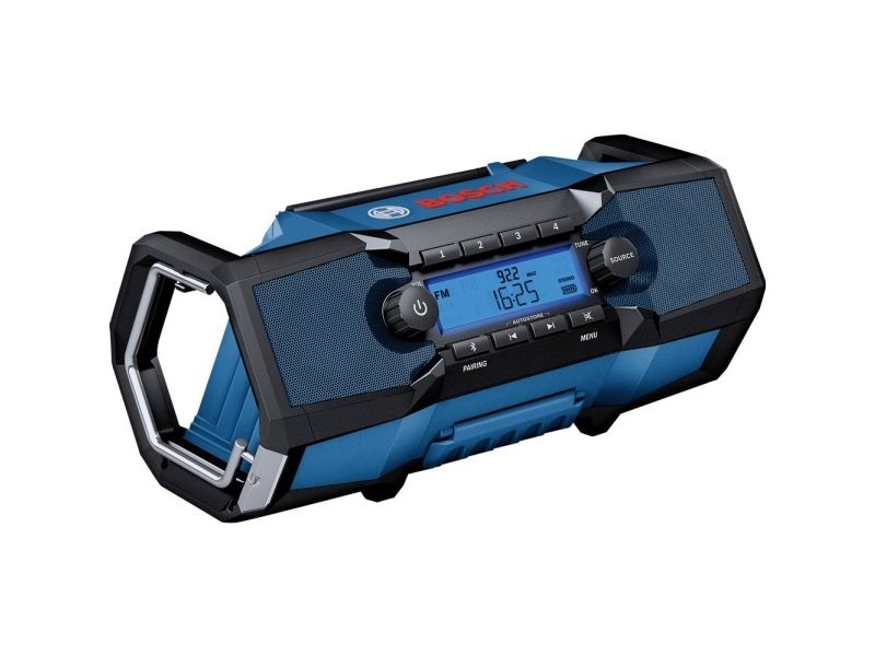 GPB 18 V-2 Professional er den robuste musikkilde til stærk lyd på ru byggepladser. Denne robuste radio er kompatibel med Bluetooth®, FM og AUX og giver altid den rigtige lyd for et behageligt arbejde. Den kan drives med et 18 V-batteri eller med strøm fra lysnettet og giver en intuitiv betjening, hurtig konfiguration, USB-lademulighed og IP 54-beskyttelse. Radioen kan opstilles lodret eller vandret og har både et håndtag og en krog til nem transport og praktisk opbevaring. Disse fordele understøttes desuden af et kompakt design. Takket være sin funktion til at forbinde to radioer med en smartphone kan brugeren nyde en unik stereolyd.