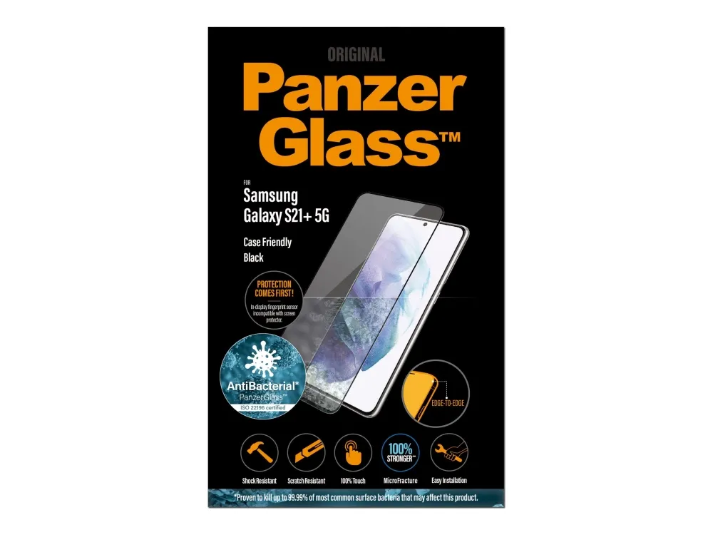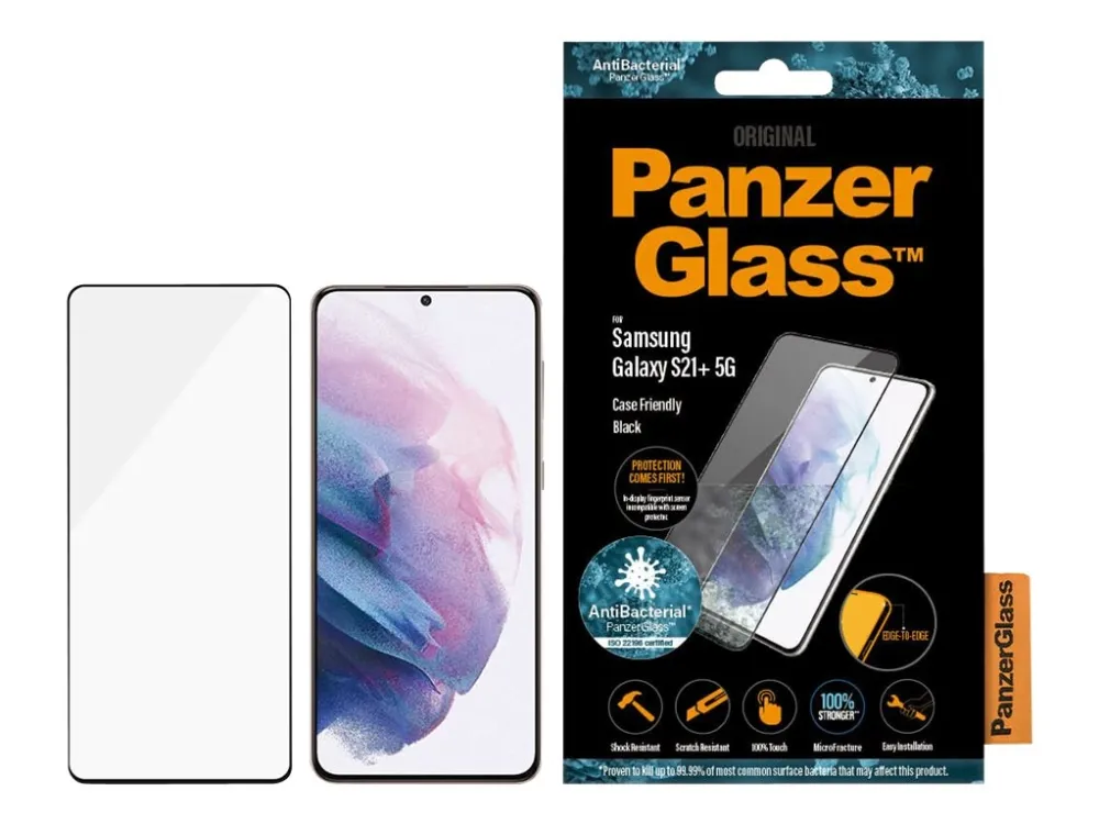 PanzerGlass - Skjermbeskyttelse for mobiltelefon - glass - krystallklar, svart rand - for Samsung Galaxy S21+ 5G