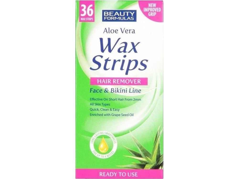 BEAUTY FORMULAS_Wax Strips Hair Remover patches for depilation of the face and bikini area Aloe Vera 36pcs.