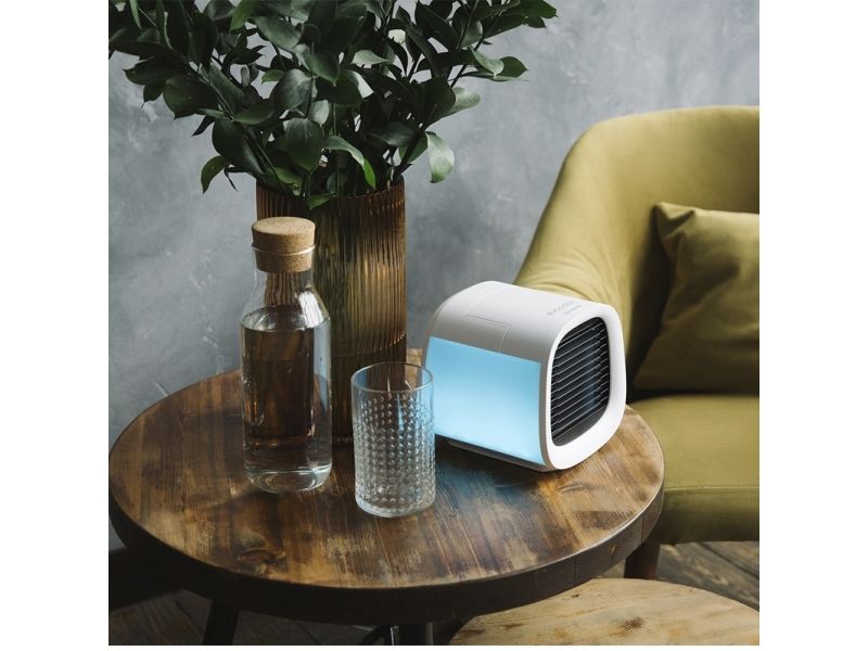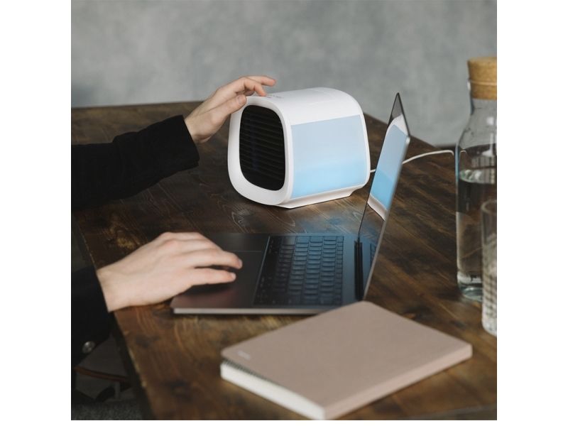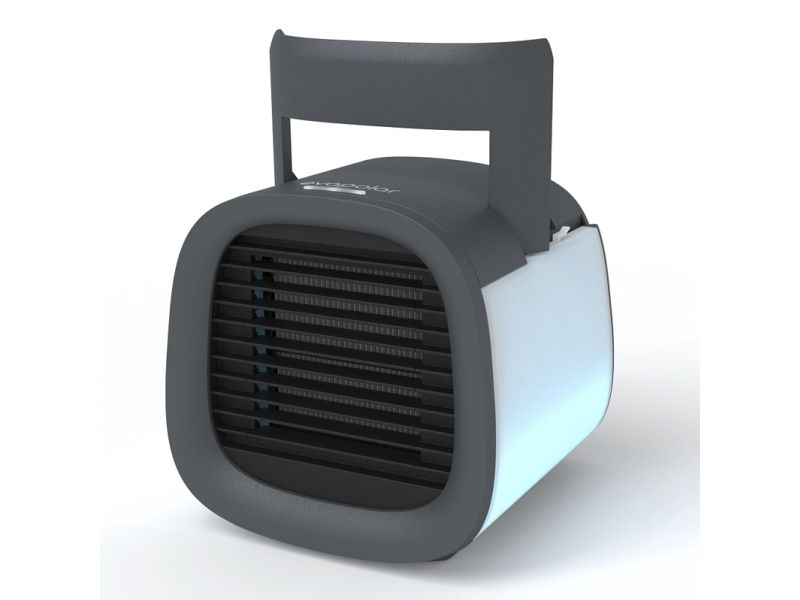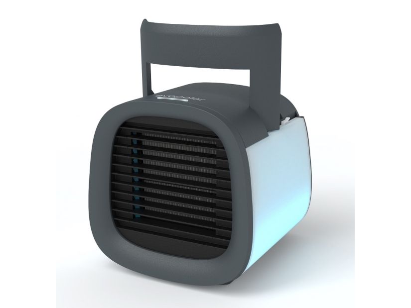 evaCHILL fra evapolar er en personlig og patenteret luftkøler, der ved hjælp af naturlig fordampnings-køling sænker temperaturen med 5-10 grader (C) i en zone på 1-2 m2 ved sengen, ved sofaen, på skrivebordet, på arbejdspladsen.
