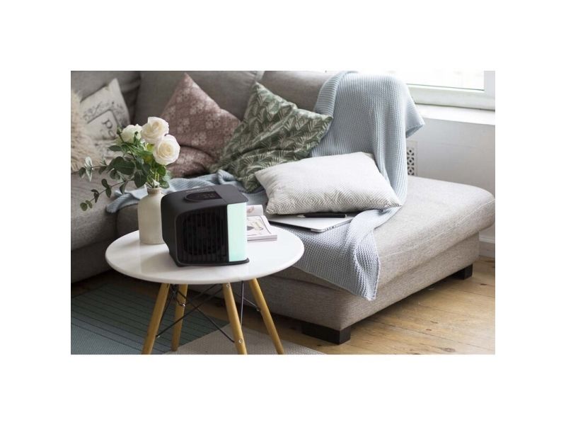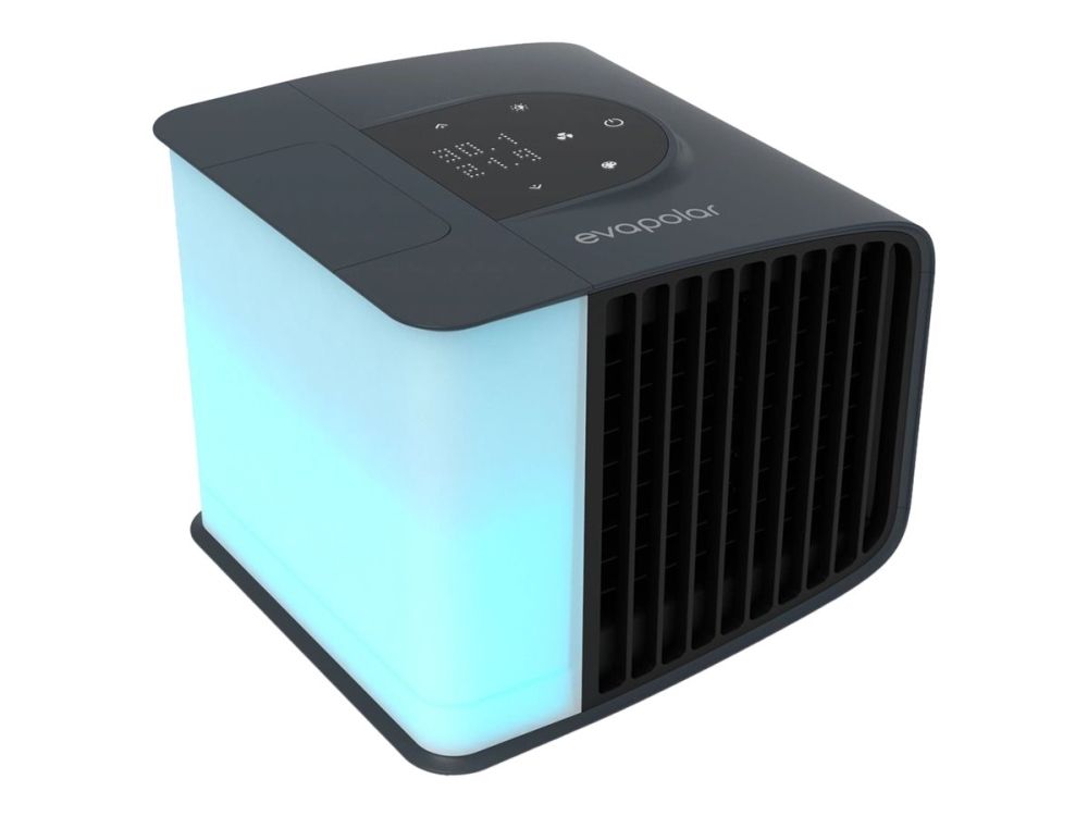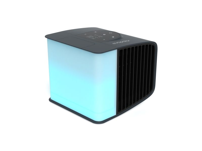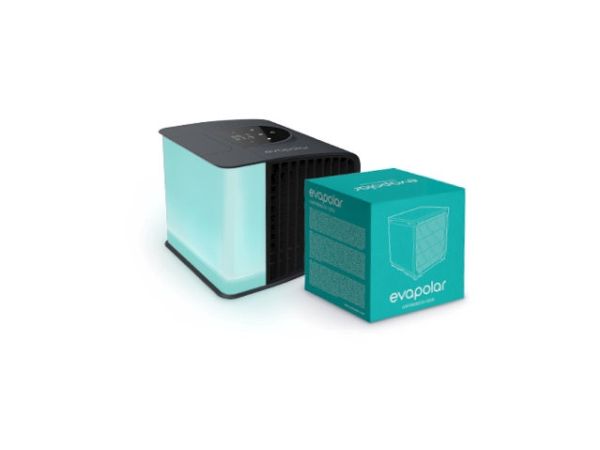 evaSMART fra evapolar er en personlig og patenteret luftkøler, der ved hjælp af naturlig fordampnings-køling sænker temperaturen med 5-10 grader (C), i en zone på 1-3 m2 ved sengen, ved sofaen, på skrivebordet, på arbejdspladsen.