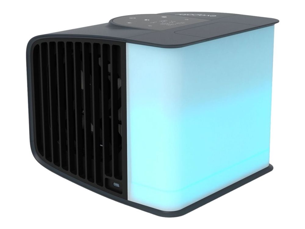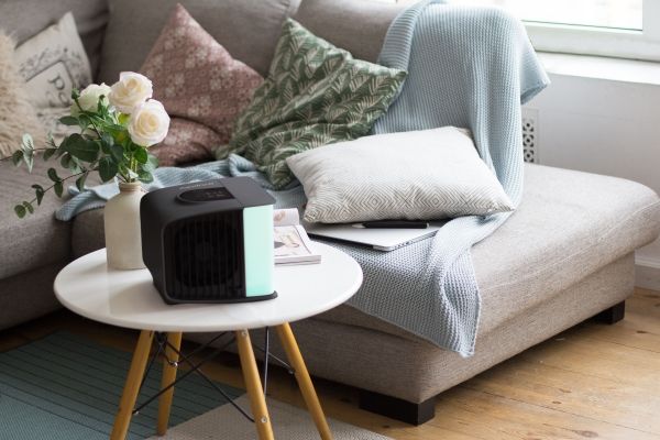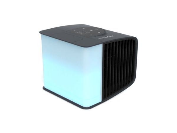 evaSMART is a smart home compatible evaporative air cooler. You can control cooling and lighting with a mobile app or voice assistant wherever you are. It can be powered by a power bank, a laptop, or a power socket.