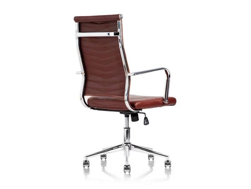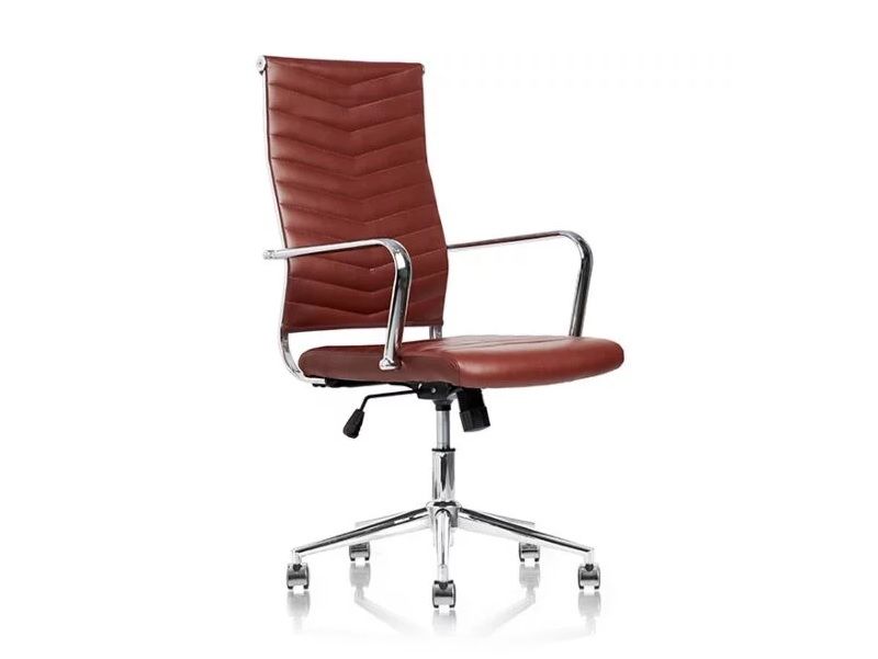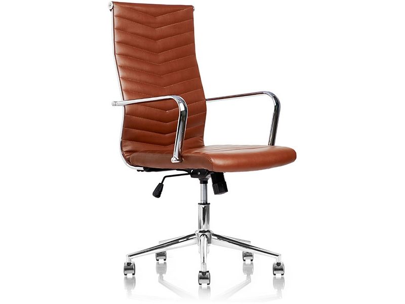 JUEL i brun udgave - en billigere, men komfortabel version af vore klassiske konferencestole. Juel leveres i brun skindimitation, med krom amlæn og V-mønstret ryg og sæde.