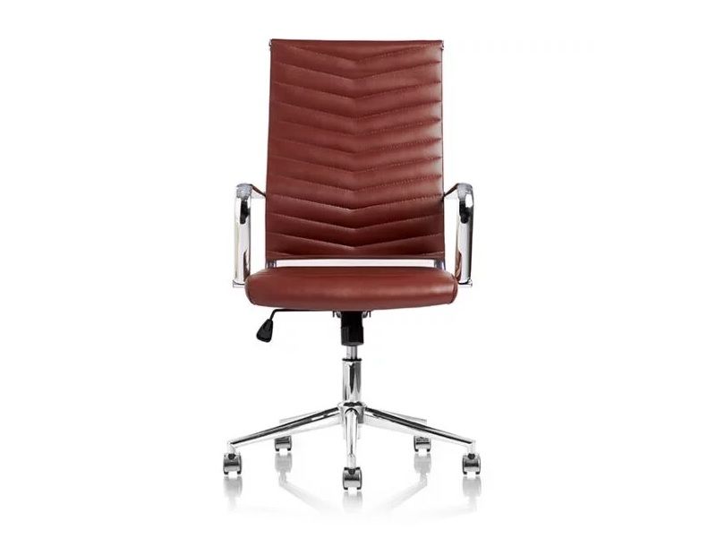 JUEL leveres i brun kunstlæder, med krom armlæn og V-mønstret ryg og sæde. Det behagelige sæde er polstret for bedre siddekomfort. Og for optimal brug i mødelokalet, er JUEL svingbar, med enkel vippefunktion og justering af siddehøjde. Justerbar siddehøjde fra 430 - 530 mm Bredt og godt sæde, med siddedybde 500 mm Med armlæn Et godt valg, for produktivitet i et stiligt konferencerum og mødelokale!