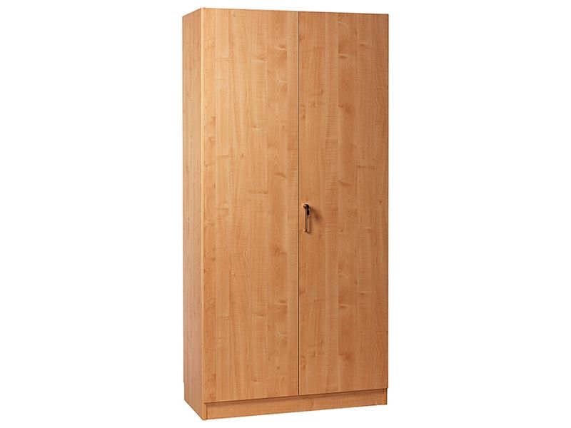 Materialskab Mora med kabinet og dørsæt i birklaminat. 5 hyldeaflæg hvoraf 3 er flytbare. Leveres med spanjoletlås. Leveres færdigmonteret.