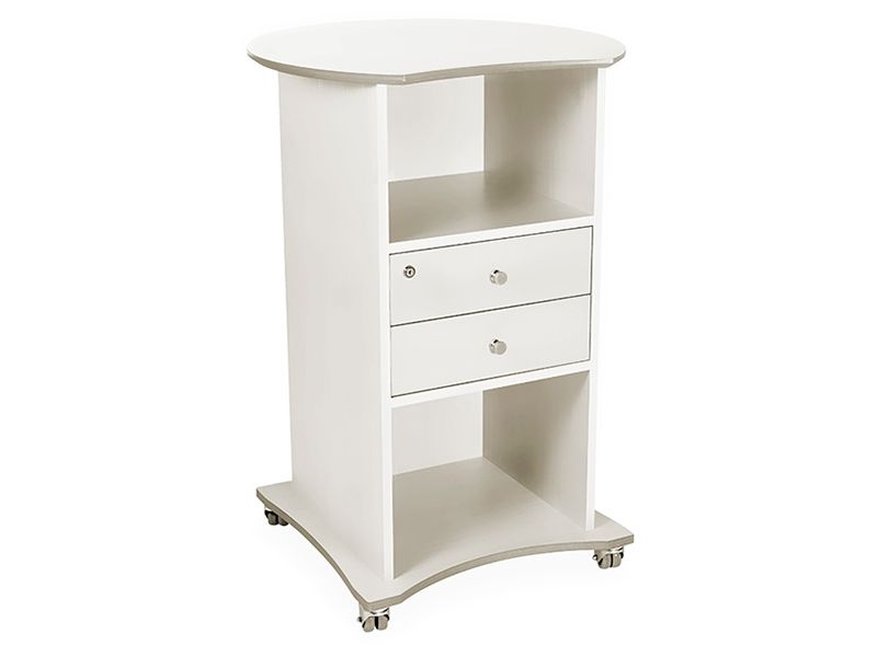 Mobilt ståbord i birk laminat udførelse, på hjul og med stor bundplade for bedret stabilitet. Bordet har h x b x d = 1075 x 450 x 460 mm, og leveres med 2 skuffer, hvoraf 1 er låsbar. Gode rum for opbevaring av A4 ringbind. Produktet har fire låsbare hjul
