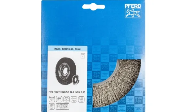 Rundbørste bred, udækket RBU dia. 180 x 25 mm variabel boring rustfrit stål-tråd-dia. 0,30 til slibeblok 1