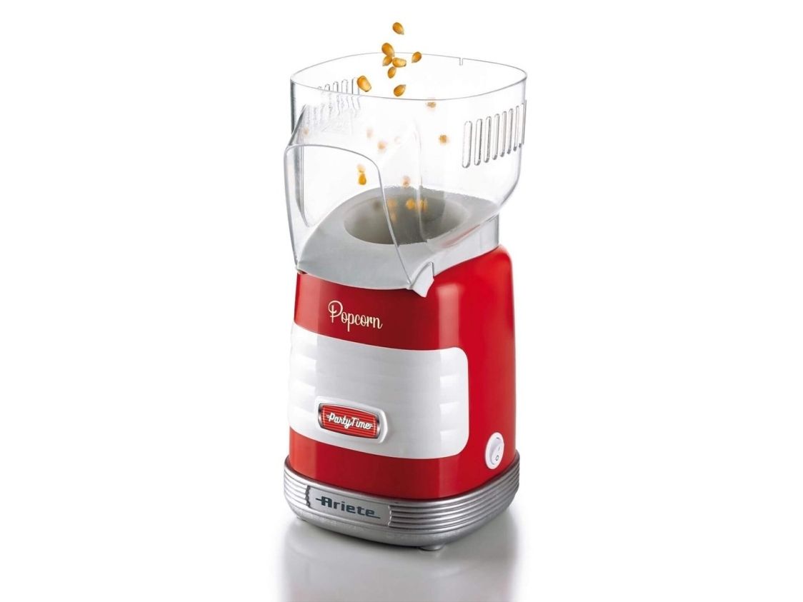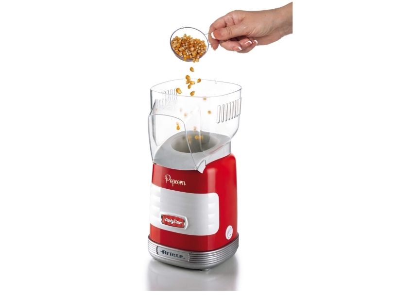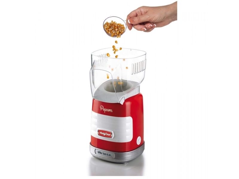 This popcorn maker from Ariete’s new Party Time line will be at your side on your evenings with family or friends with lots of crunchy, tasty popcorn ready to be munched non-stop. Thanks to the special hot air cooking method, Party Time Pop Corn turns 60 g of corn into delicious-smelling, light popcorn in less than 2 minutes. There is no need for you to add anything else like oil or fat to achieve a light but tasty snack, completely natural and fat-free.Ariete 2956, Pop Corn Party Time, Pop Corn Machine, Bursts 60gr of Corn for Pop Corn in 2 minutes with Hot Air, Fat Free, 1000 Watt, Red. Product colour: Red, Preparation time: 2 min, Capacity: 60 g. Power: 1100 W. Width: 185 mm, Depth: 140 mm, Height: 305 mm. Products per master (outer) case: 4 pc(s), Master (outer) case gross weight: 5.74 kg, Products per pallet: 120 pc(s). Warranty period: 2 year(s)