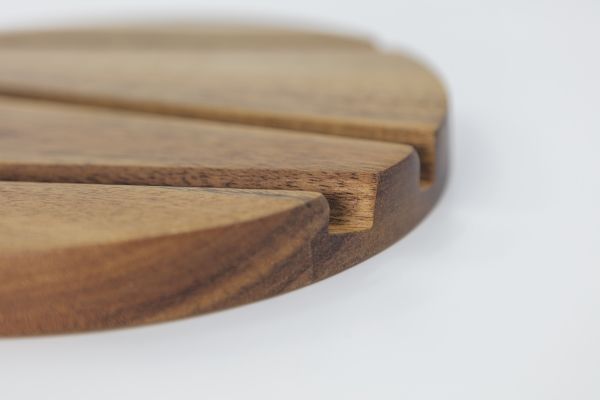 Lækker grydeunderlag/ Bordskåner i dyrket akacietræ, ekstra tyk til at holde på varmen længe. Også velegnet til surfpotter og som kogebogsstativ. Bemærk venligst, at hver grydelapp har et unikt udseende. Skandinavisk boligdesign.