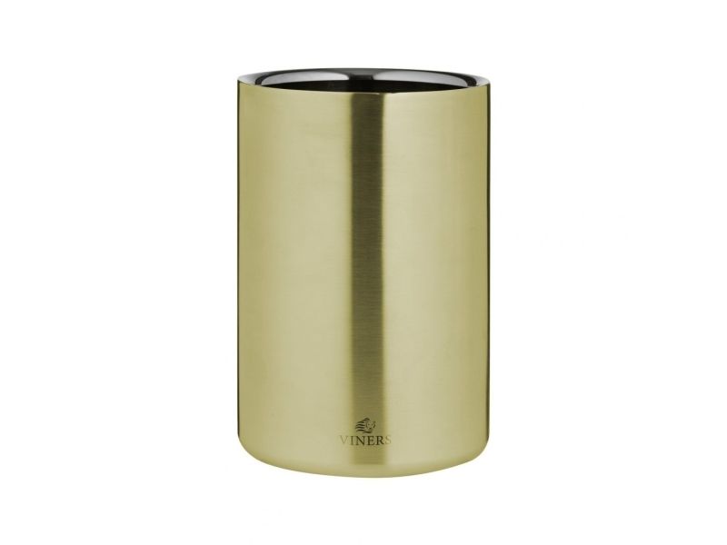 Viners barware-kollektion indeholder alt, hvad du behøver for at skabe, servere og underholde dine gæster i dit eget hjem. Hold din vin kølig i længere tid med denne dobbeltvæggede, isolerede vinkøler i rustfrit stål. Den har en satinbørstet guldeffekt på ydersiden og et poleret spejl på indersiden.