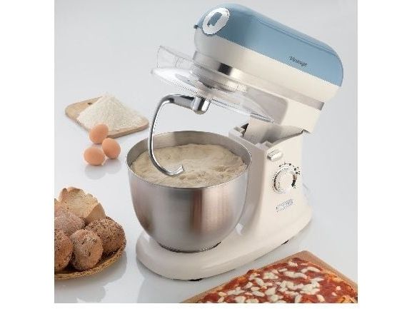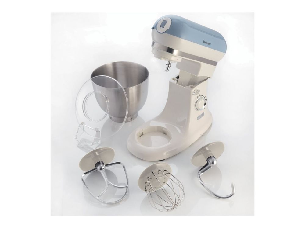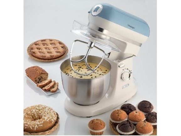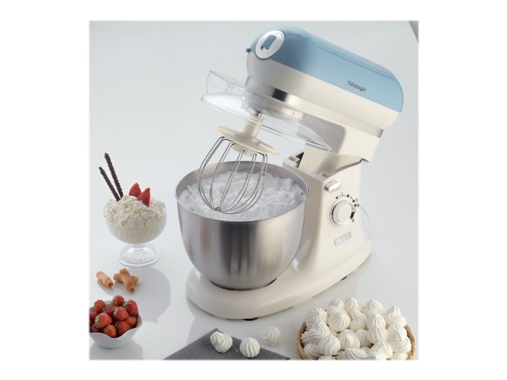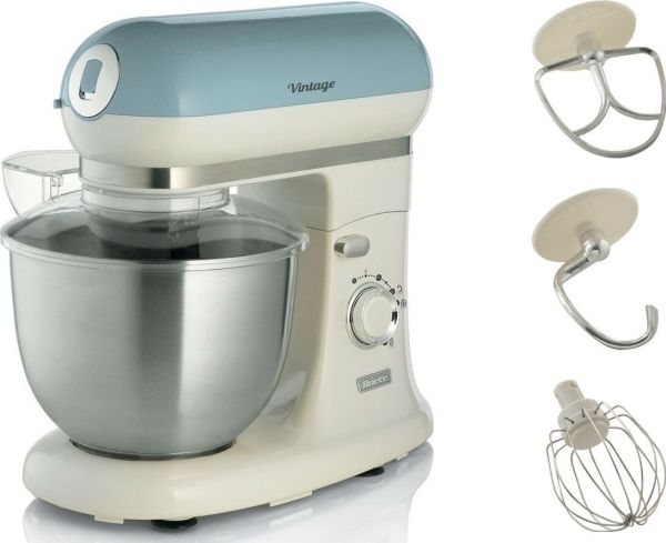 The Ariete 1588 Vintage Mixer is the planetary mixer with an elegant, sophisticated design which combines technology and functionality both for daily meals and for fancy patisserie creations. The motor which reaches 2400W on maximum power, the 7 speeds and the pulse function allow it to work even the stiffest and coarsest doughs. The large 5.5 L stainless steel bowl and the 3 whisks supplied, the dough hook for kneading, the heart-shaped one for mixing and the wire one for beating, allow for a wide range of creations. The non-slip feet and the balance allow the mixer to work at high speed in a secure, stable way, without creating any mess, thanks to the splash guard lid. Ariete makes iconic and functional products: the Vintage line combines Italian design with the ease of use that is the hallmark of Ariete, the leading manufacturer of food preparation products.