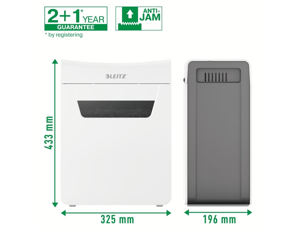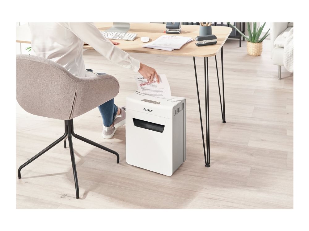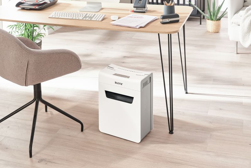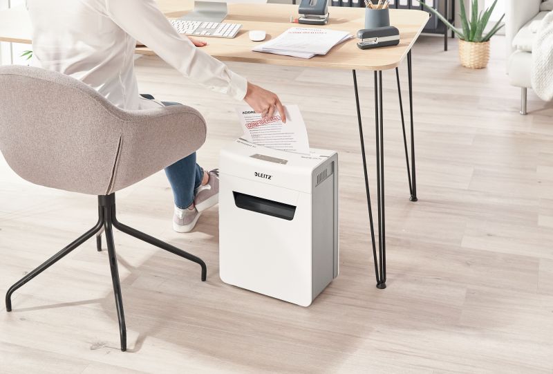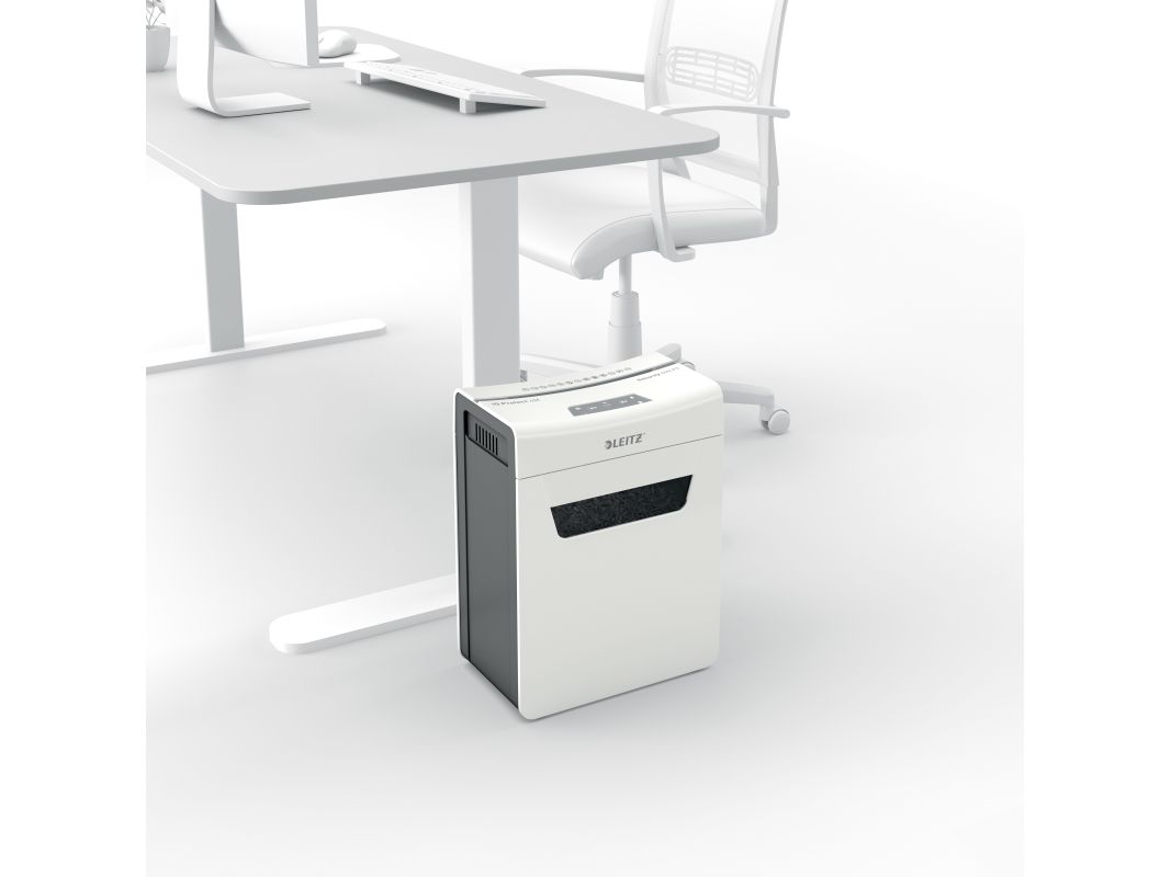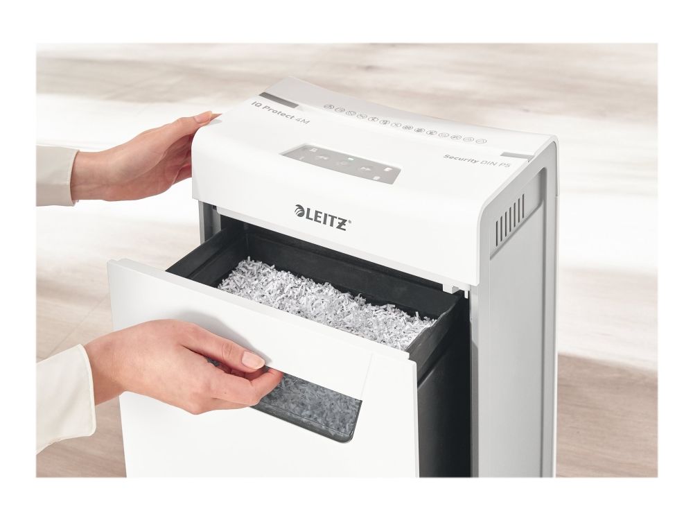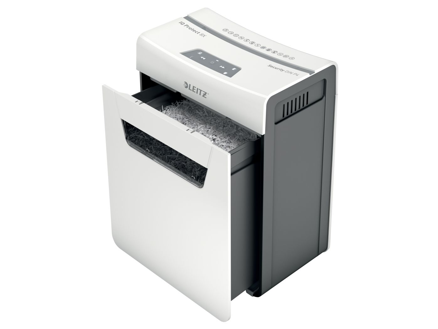 Leitz IQ Protect 8X makuleringsmaskin er designet for deg som verdsetter sikkerhet og effektivitet i dokumenthåndteringen. Denne robuste maskinen kan makulere opptil 8 ark om gangen, inkludert stifter og binders, noe som gjør den til et allsidig tilskudd til ethvert kontor. Anti-Jam-teknologien og Autostop-funksjonen sikrer jevn og sikker drift, minimerer forstyrrelser og øker brukersikkerheten. Med en kontinuerlig driftstid på 10 minutter og sikkerhetsnivå P-4 er den egnet for makulering av sensitive dokumenter til uleselige biter. Makuleringsmaskinen har også en uttrekkbar beholder med en kapasitet på 14 liter, som rommer opptil 125 ark, noe som betyr mindre tømming og mer tid til å fokusere på det som er viktig. Enten det er til personlig bruk eller på et travelt kontor, tilbyr Leitz IQ Protect 8X en pålitelig og praktisk løsning for å holde informasjonen din sikker.