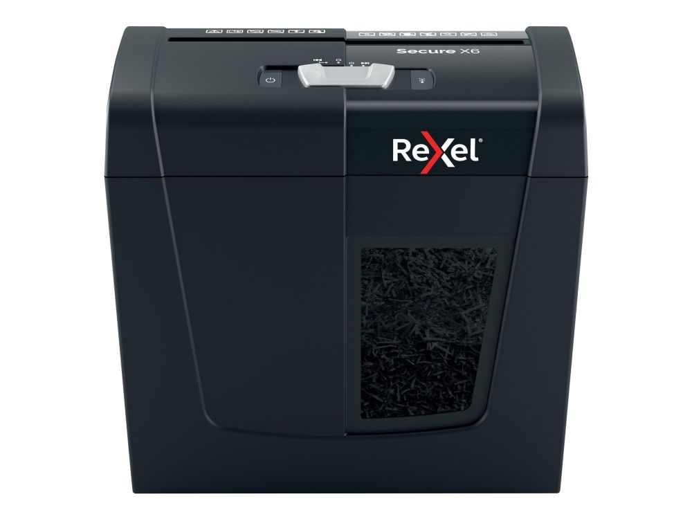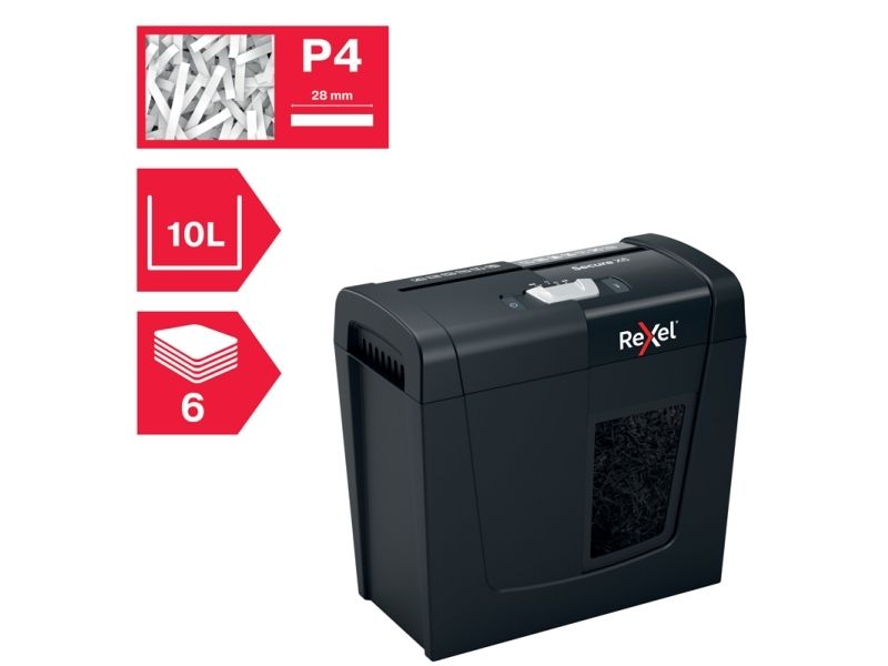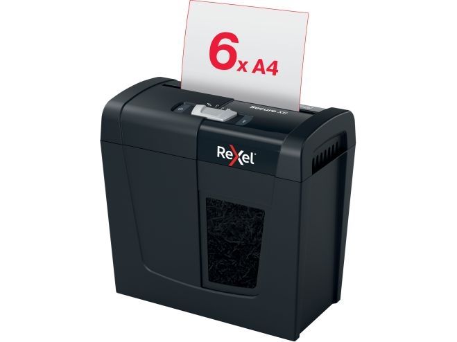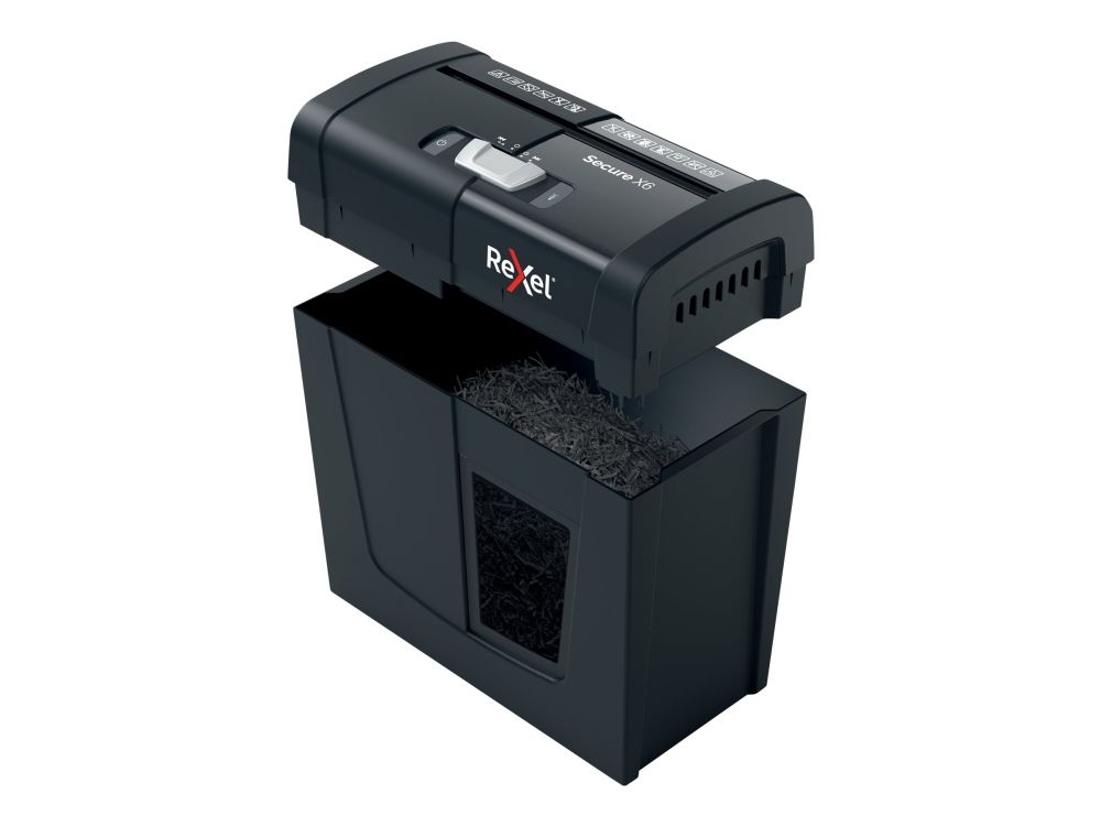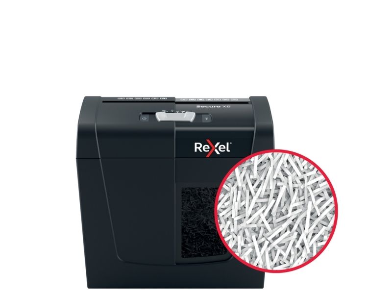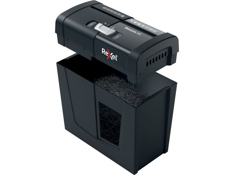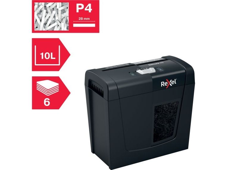 Rexel's range of Secure paper shredders are ideal for destroying your personal documents and sensitive information at home. The Secure X6 shredder machine shreds up to 6 sheets of A4 paper (80gsm) in one go through the manual feed slot into P-4 (4x40mm) cross cut pieces. This cross cut shredder is small and compact making it a perfect home shredder for use in a home office; it is also an ideal personal office shredder that fits conveniently under a desk. Designed for light to moderate use with a 10L bin capacity.