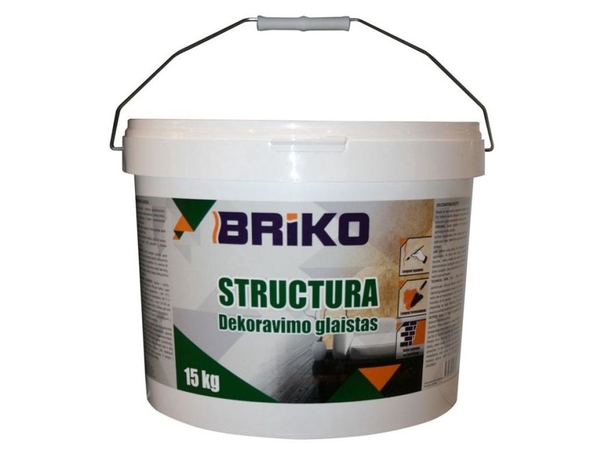 Brand- Briko. Collection- Structura. Quantity in package, kg- 15. For finishing works- Indoor. Colour- White. Expiration date- 12 mo.