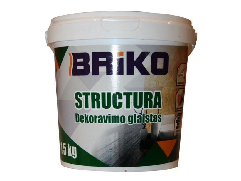 Brand- Briko. Collection- Structura. Quantity in package, l- 1.5. Quantity in package, kg- 1.5. For finishing works- Indoor. Colour- White. Expiration date- 12 mo.