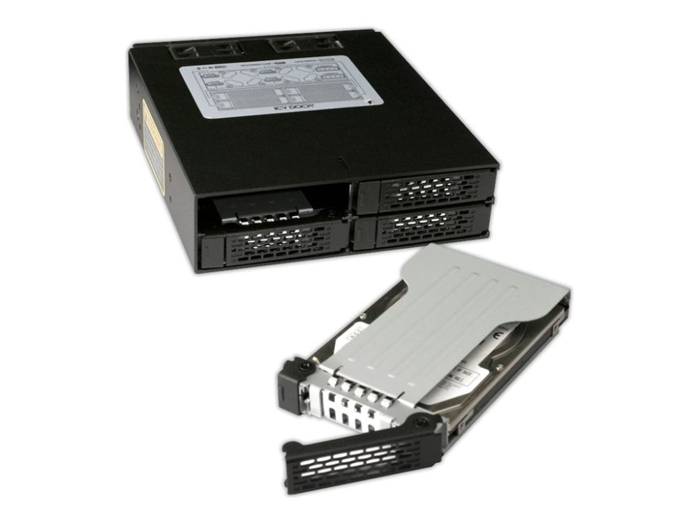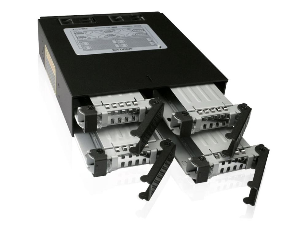 - Fits 4 x 2.5" SATA I / II / III and SAS HDD/SSD. - Accommodates Drives with up to 15mm Height. - Fits 4 Drives into a Single 5.25" Device Bay. - Status LED on Front for Each Drive. - Full Metal EZ Slide Mini Tray System with Full Cage Design. - Small Form Factor Perfect for IPC, Servers, and Small Form Factor Cases. - Front, Rear, Top, and Bottom Ventilation Slots. - Dual 40mm Cooling Fans. - Heavy Duty Full Metal Construction. - Support SATA 6Gbps. - Top Cover for the Tray Adds Extra Drive Protection.