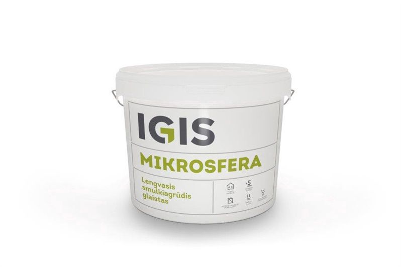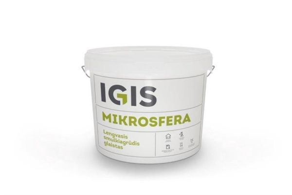 Brand- Igis. Collection- Mikrosfera. Quantity in package, l- 1. For finishing works- Indoor. Colour- White. Thinner- Water. Store at temperature- 5 - 30°C. Expiration date- 12 mo.