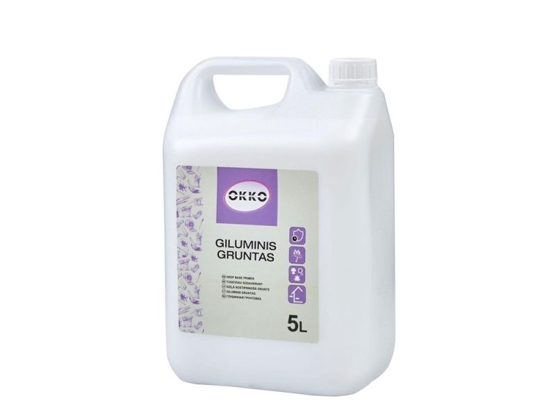 Brand- Okko. Quantity in package, l- 5. For finishing works- Indoor and outdoor. Suitable for coating surfaces- , Plasterboard, . Output- 0,05–0,2 l/m². Colour- White.