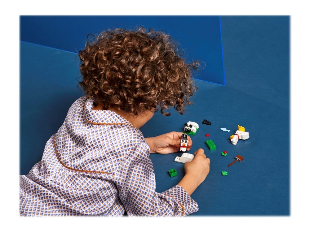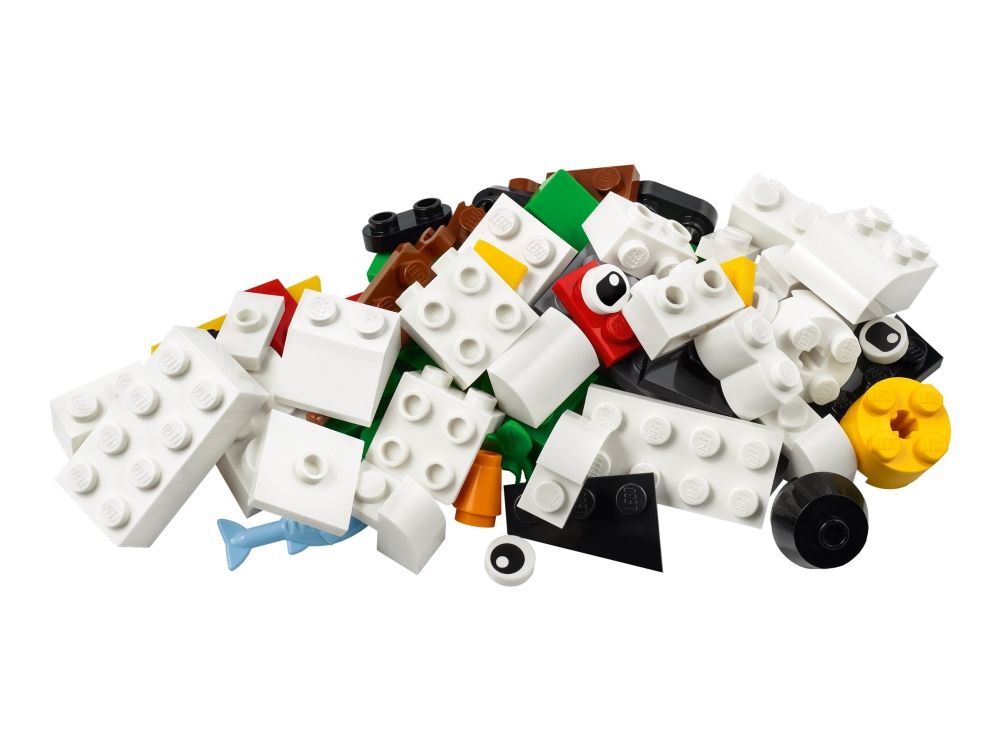 2. Hva inneholder esken? Lekesettet med 60 deler har alle LEGO® klossene barn trenger for å bygge en lekesnømann med feiekost, sau med blomstereng, måke med fisk – og alt mulig annet de kan finne på.
