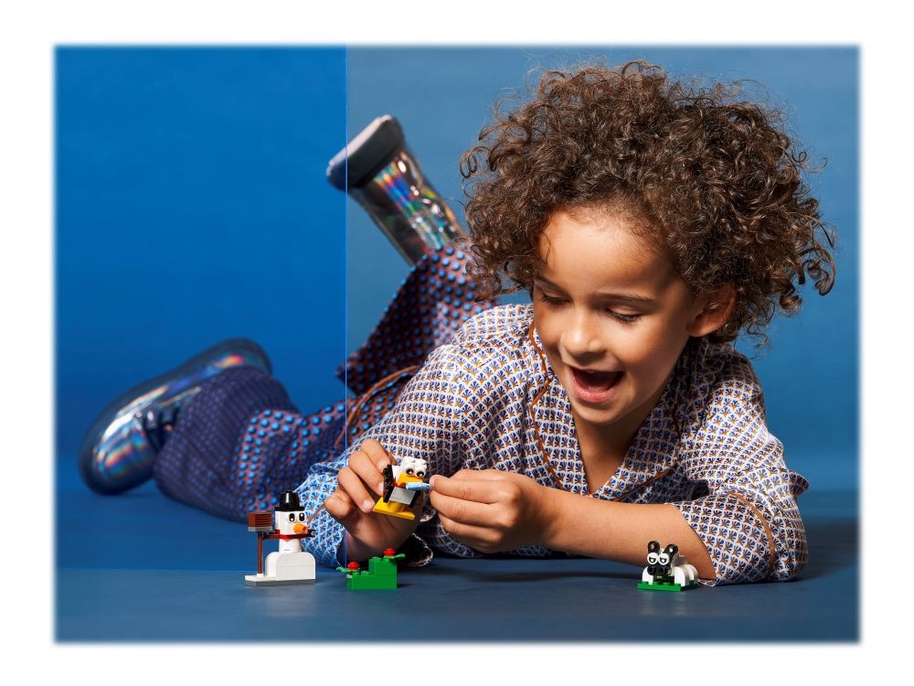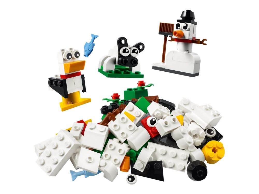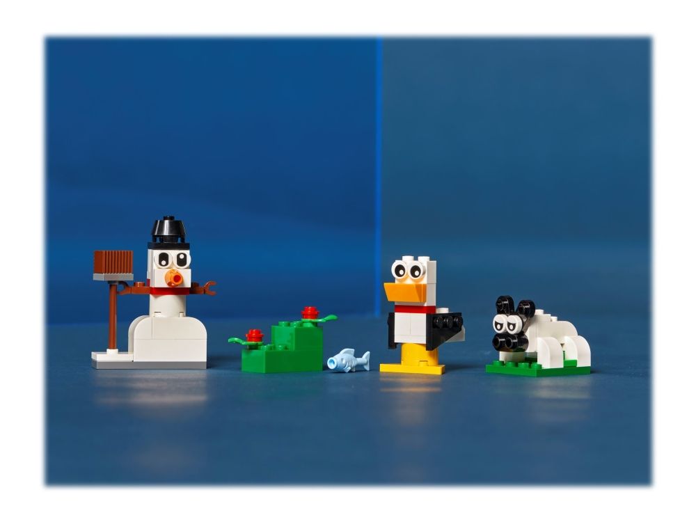 1. Barn fra fire år og oppover kan bygge, skape og finne på ting med lekesettet LEGO® Classic Kreativitet med hvite klosser (11012). Inneholder ideer til tre lettbygde modeller som får den kreative byggeleken i gang.