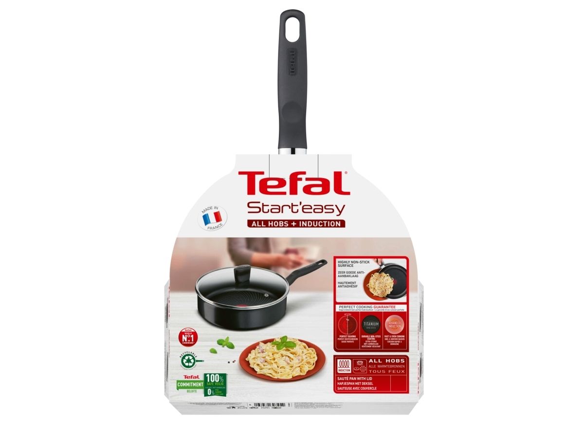 Tefal Start''easy C26732, Rund, Sautépanne, Sort, Titan, Aluminium, Thermo-Spot