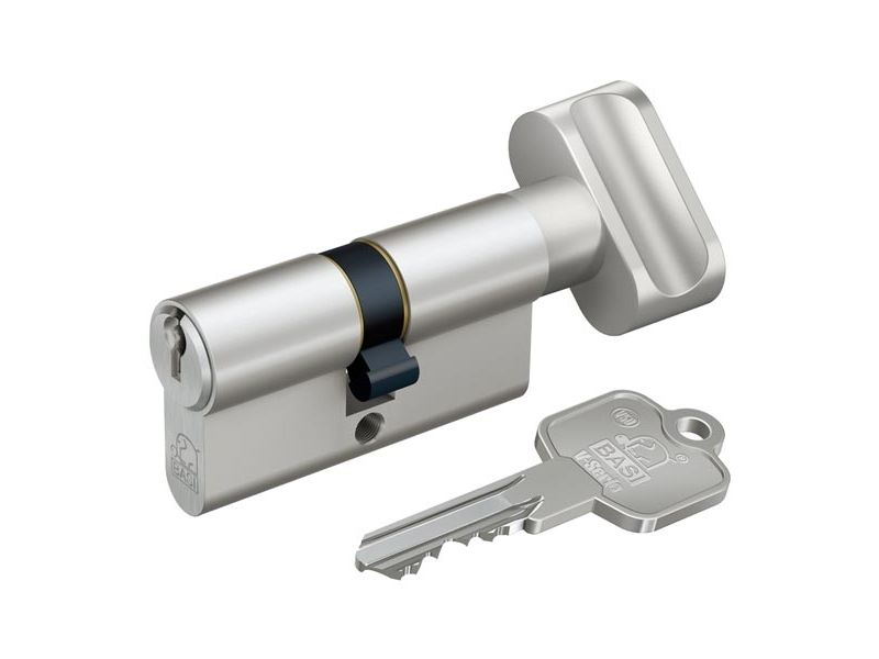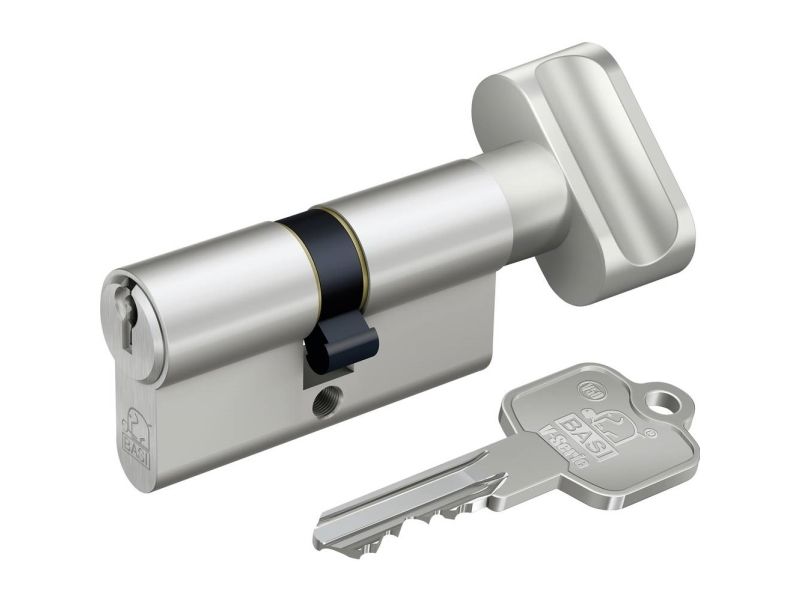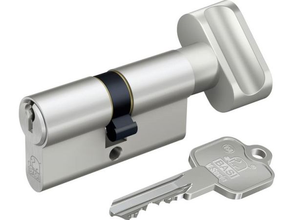 Profil-knopcylinderen kan åbnes helt normalt med en passende nøgle udefra. På indersiden kan cylinderen betjenes med en drejehjul. Knopcylinderen kan altid åbnes indefra med nøglen, også når knoppen er spærret. Flaskerne egner sig ideelt til husdøre, lejlighedsdøre eller kælderdøre. V50 knopcylinder består af materialer i høj kvalitet, der sikrer en lang levetid og en høj slidstyrke. Ved fremstilling af knopcylinder udføres en prøvning i henhold til en 1303:2015. Knopcylinderen er fremstillet af massiv messing og leveres med 3 cylindernøgler. Nøglen er udstyret med et stort hoved og sørger dermed for et godt greb. Cylinderen er udstyret med et enssluttende system. Det betyder, at nøglen kan bruges til flere cylinderlåse. Uanset om det er til husdøre, ekstralåse, havedåger, kælderdør eller hængelåse - når du vælger et ensartet system, behøver du i fremtiden kun en nøgle til åbning af døre. Vær derfor opmærksom på nummeret på jævnlukning, når du køber.