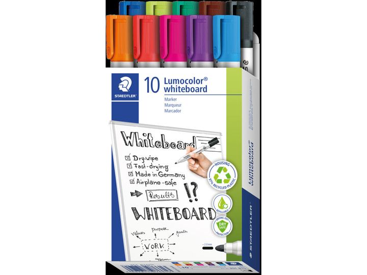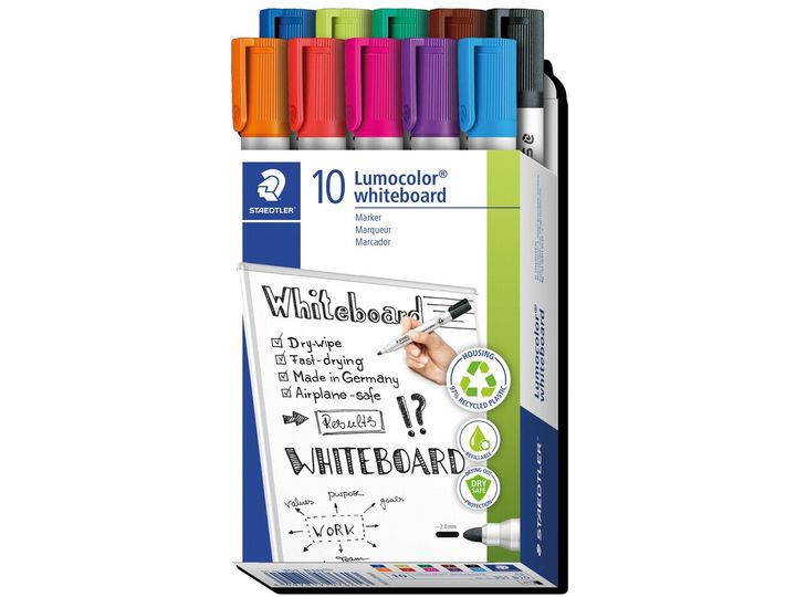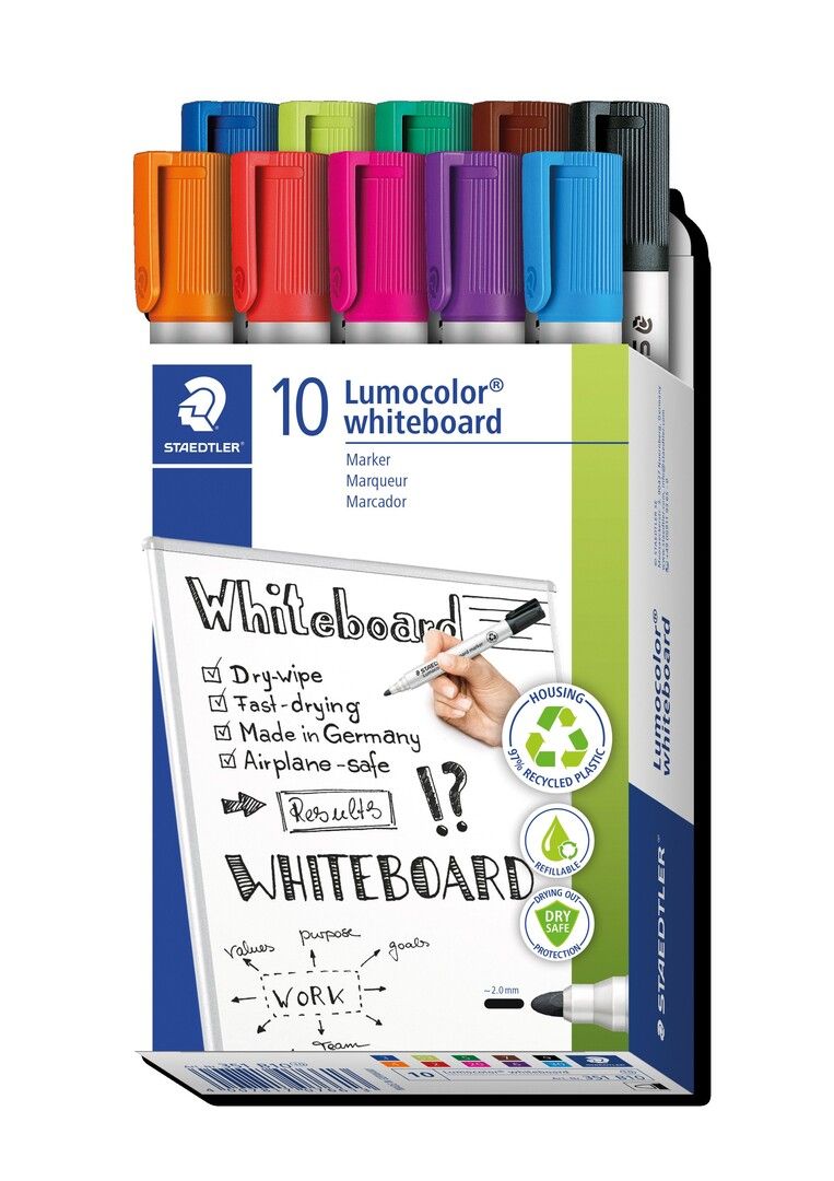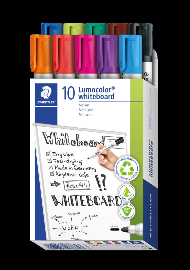 STAEDTLER Lumocolor 351 - Markør - for glass, whiteboard, porselen - assorterte farger - 2 mm (en pakke 10)