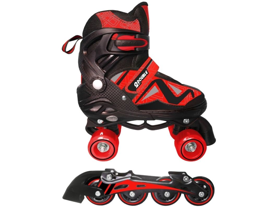 Double 2-i-1 Rulleskøjter, Rød STR. 31-34